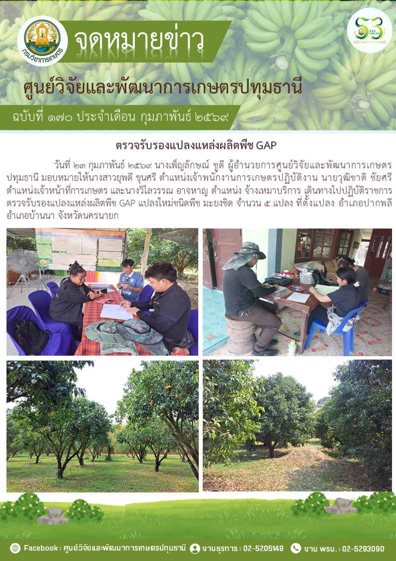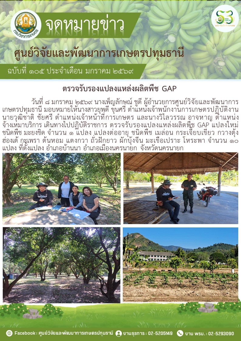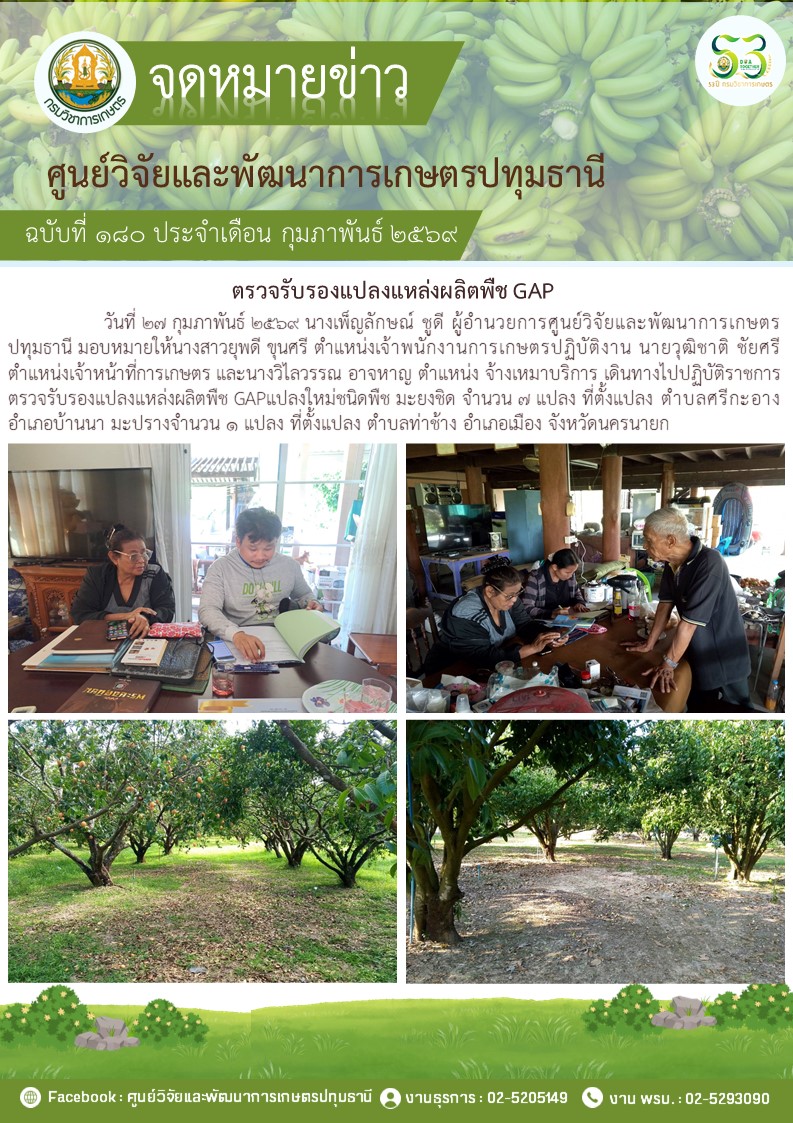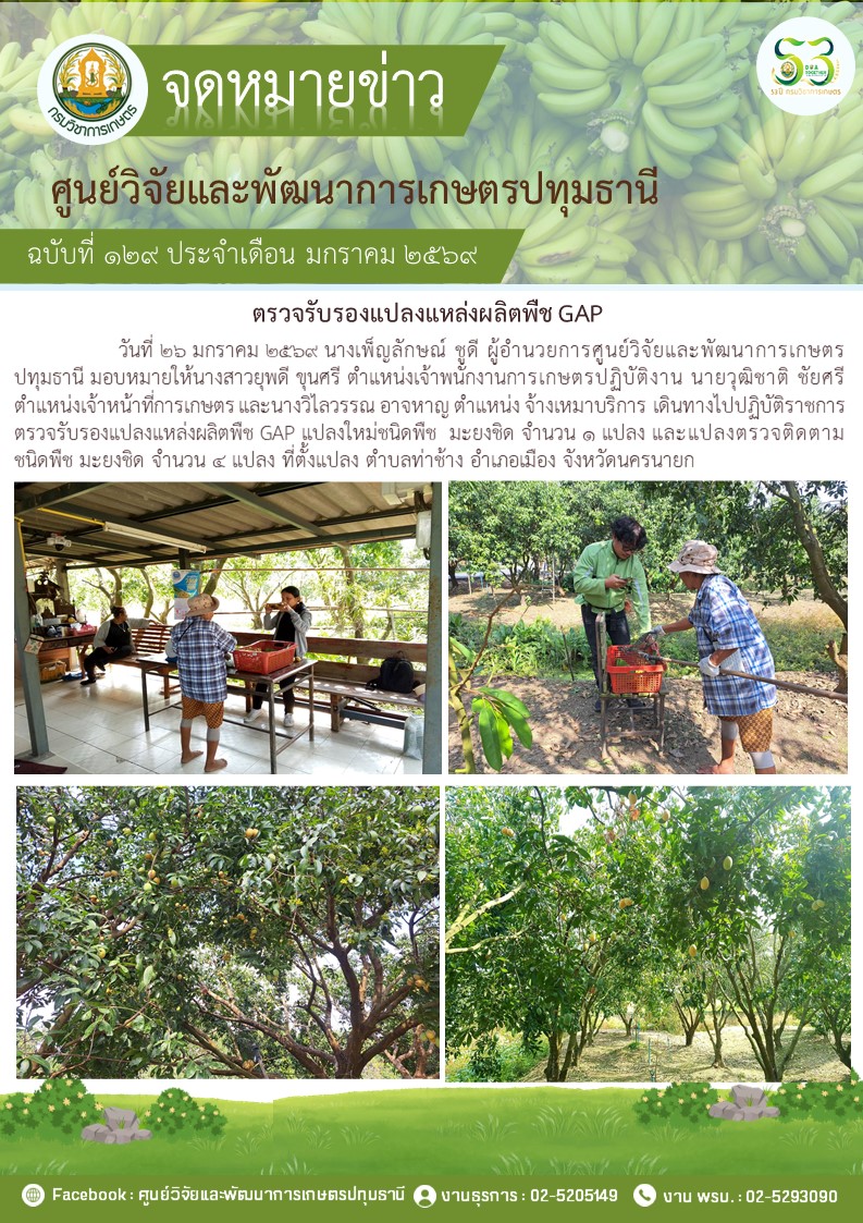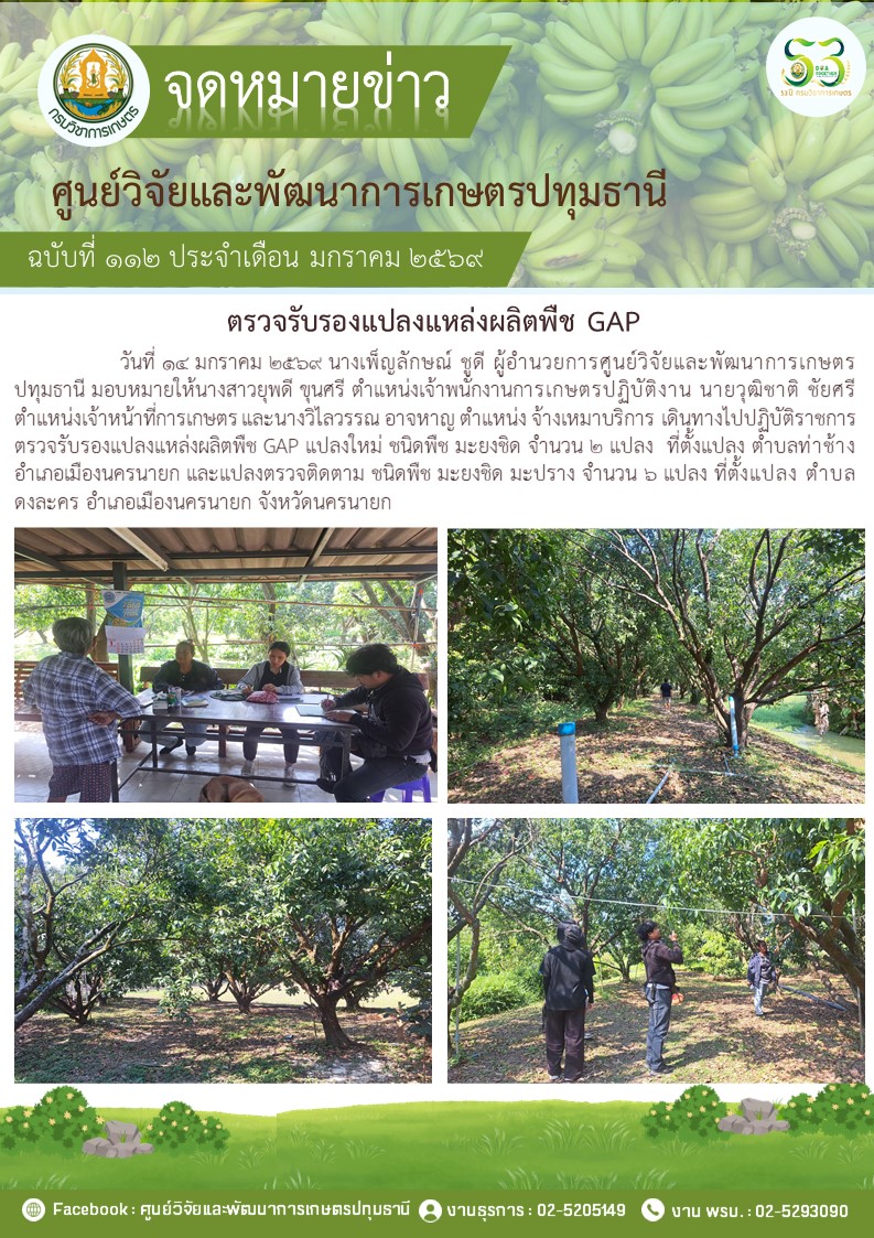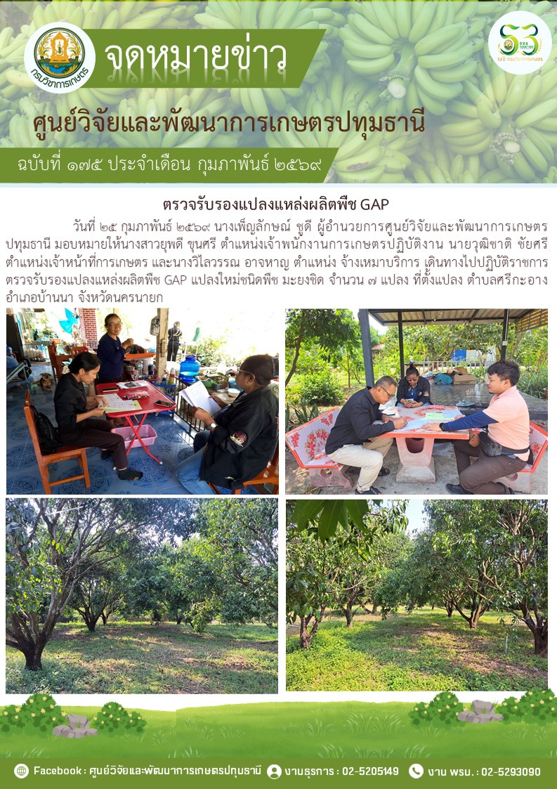 ตรวจรับรองแปลงแหล่งผลิตพืช GAP แปลงใหม่ 5 แปลง พืช มะม่วง กล้วยน้ำว้า กล้วยหอม ไฮโดรโปนิวกส์