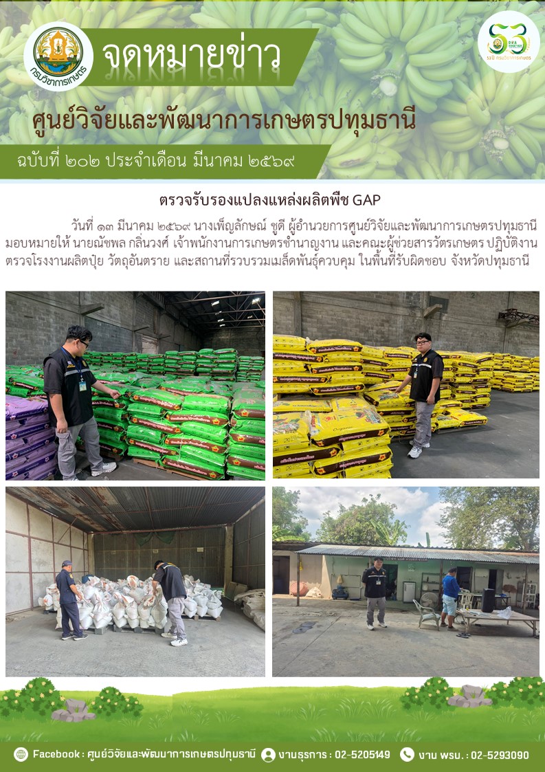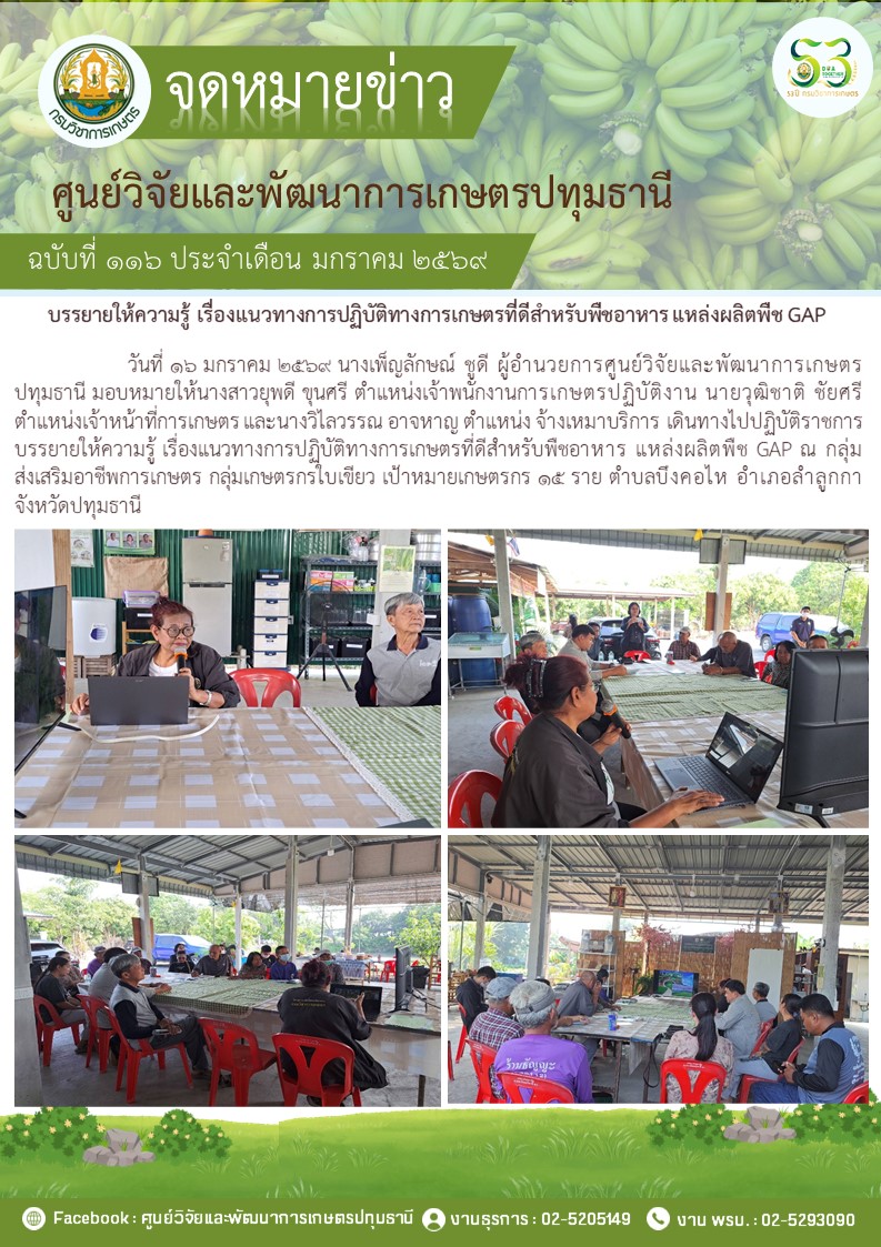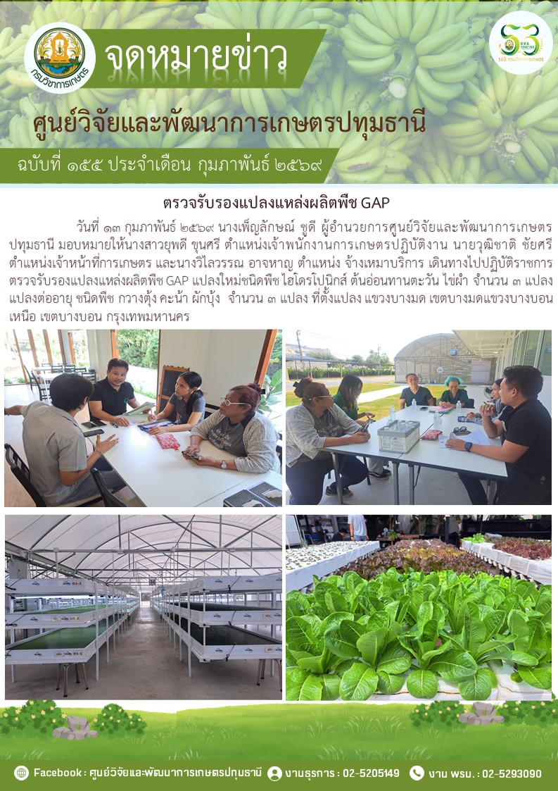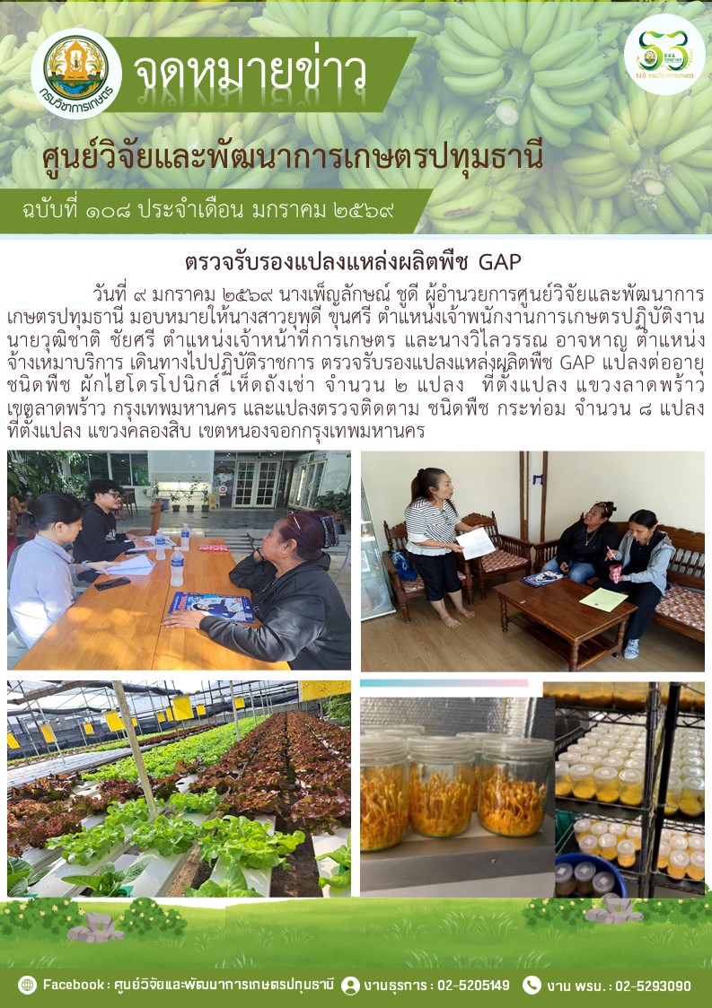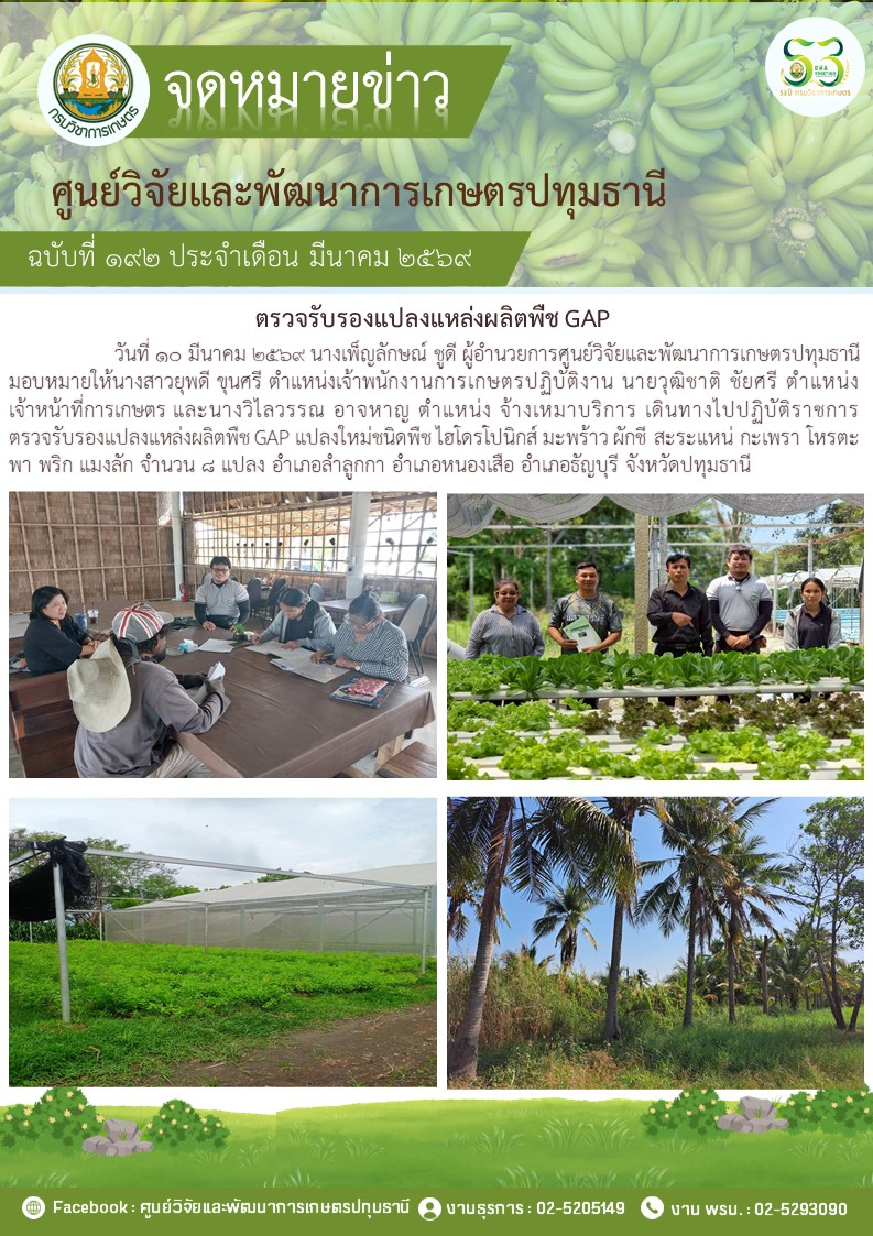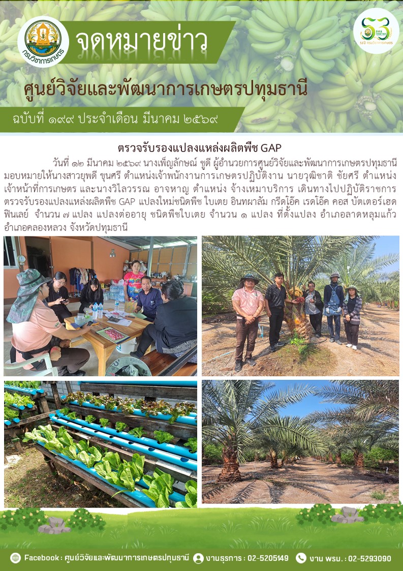 ตรวจรับรองแปลงแหล่งผลิตพืช GAP แปลงใหม่ 5 แปลง พืช มะม่วง กล้วยน้ำว้า กล้วยหอม ไฮโดรโปนิวกส์
