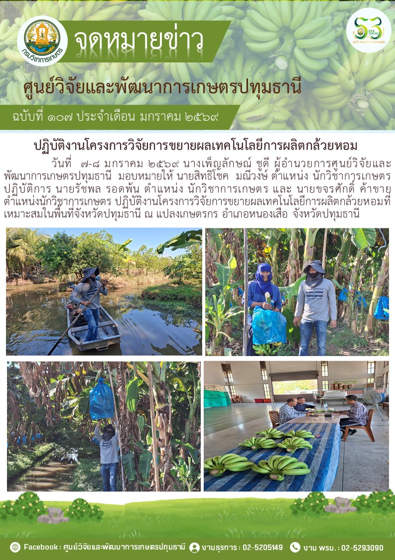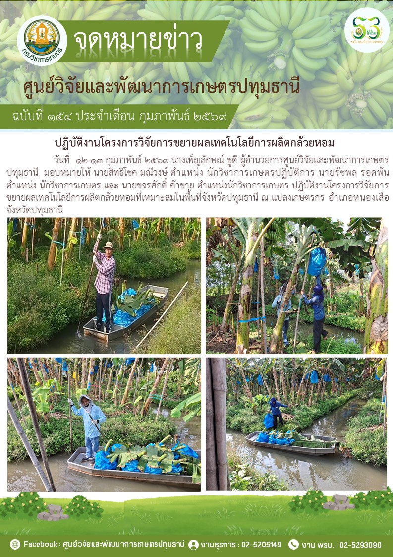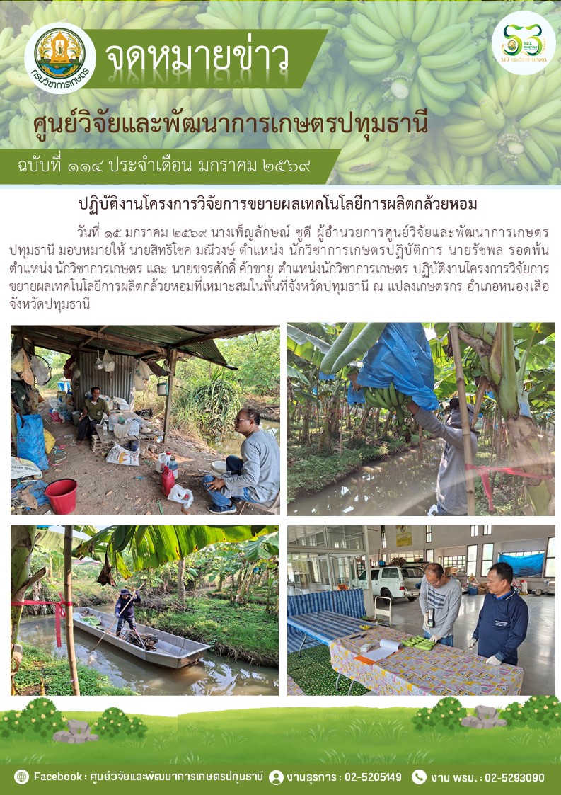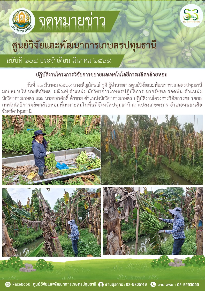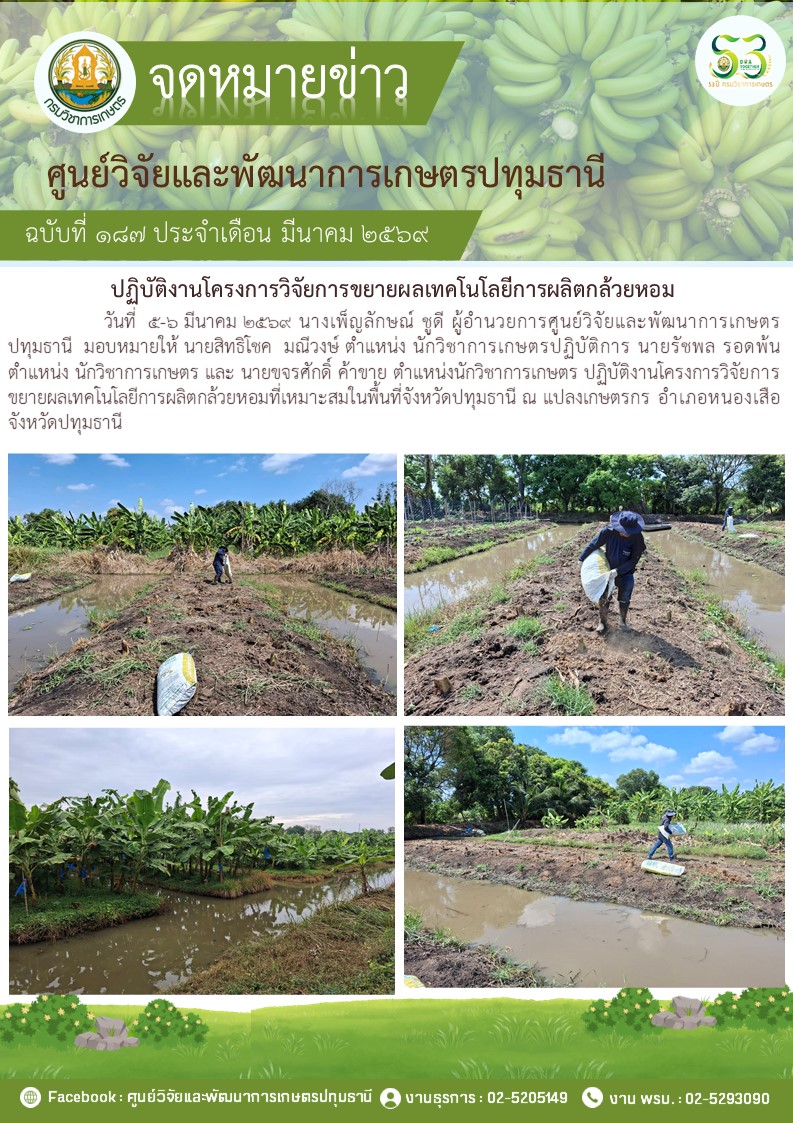ปฎิบัติงานโครงการวิจัยการขยายผลเทคโนโลยีการผลิตกล้วยหอม
