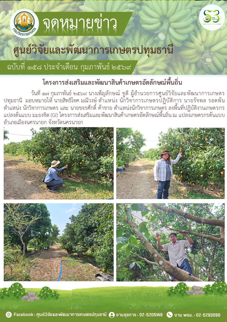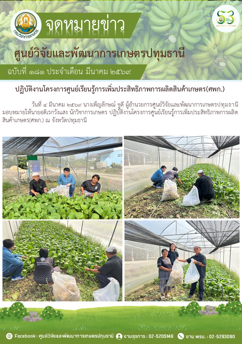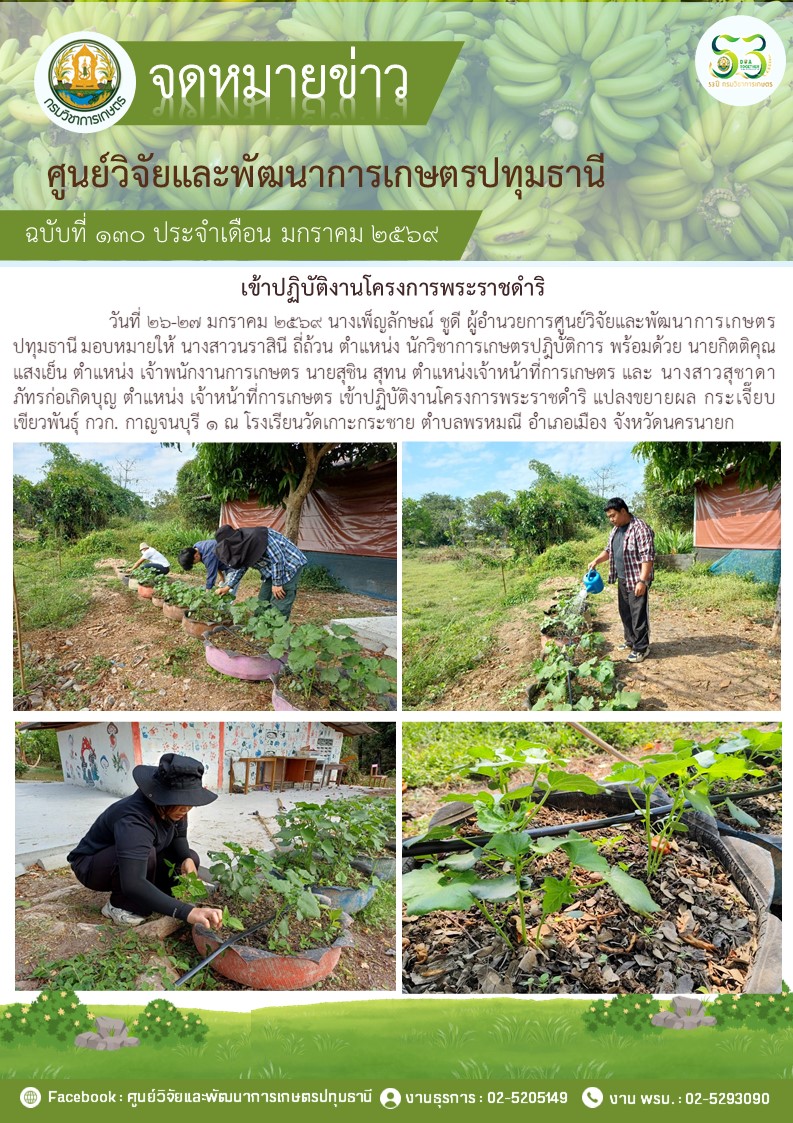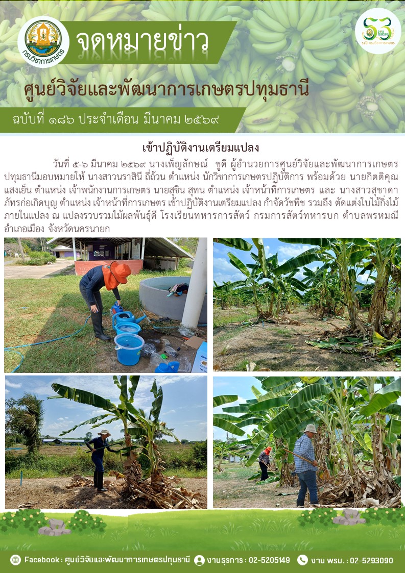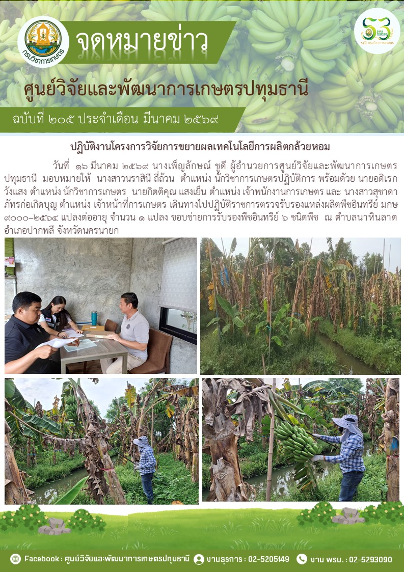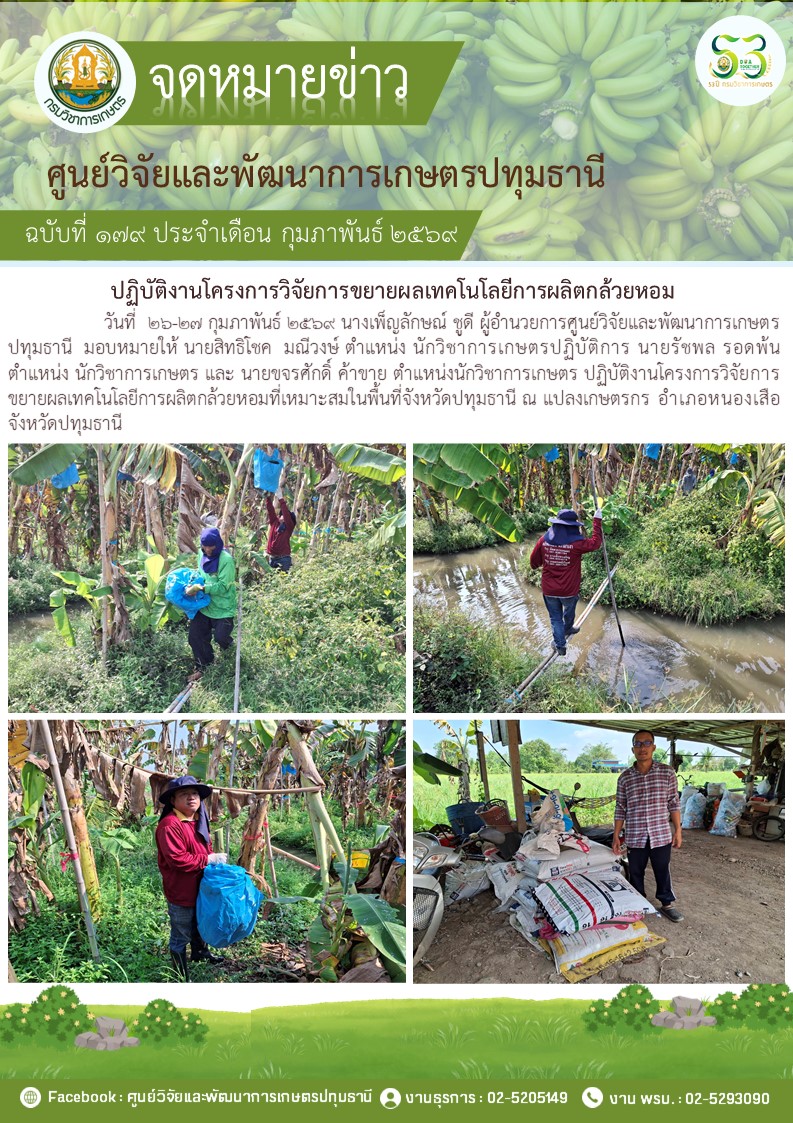 ปฎิบัติงานโครงการวิจัยการขยายผลเทคโนโลยีการผลิตกล้วยหอม