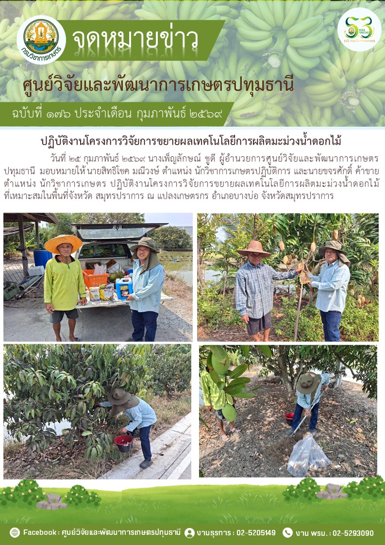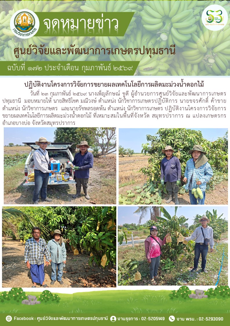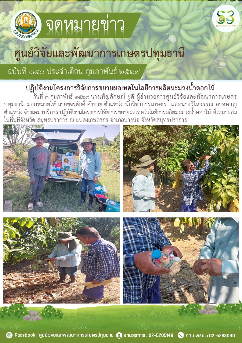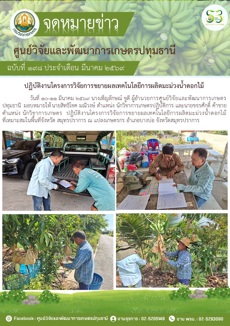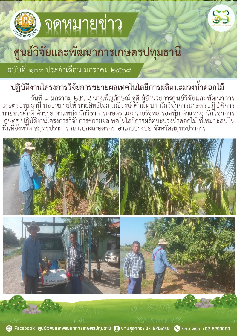 ปฎิบัติงานโครงการวิจัยการขยายผลเทคโนโลยีการผลิตมะม่วงนํ้าดอกไม้