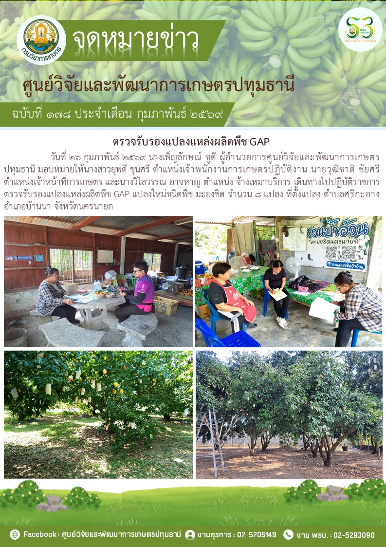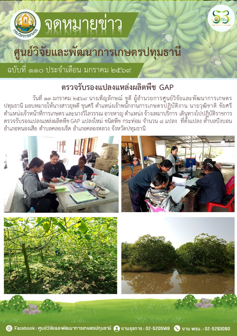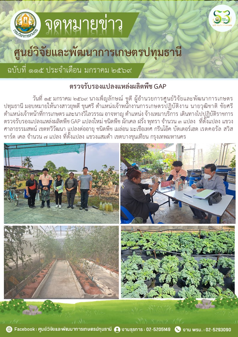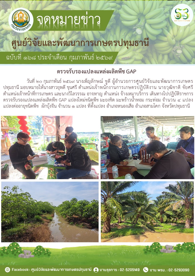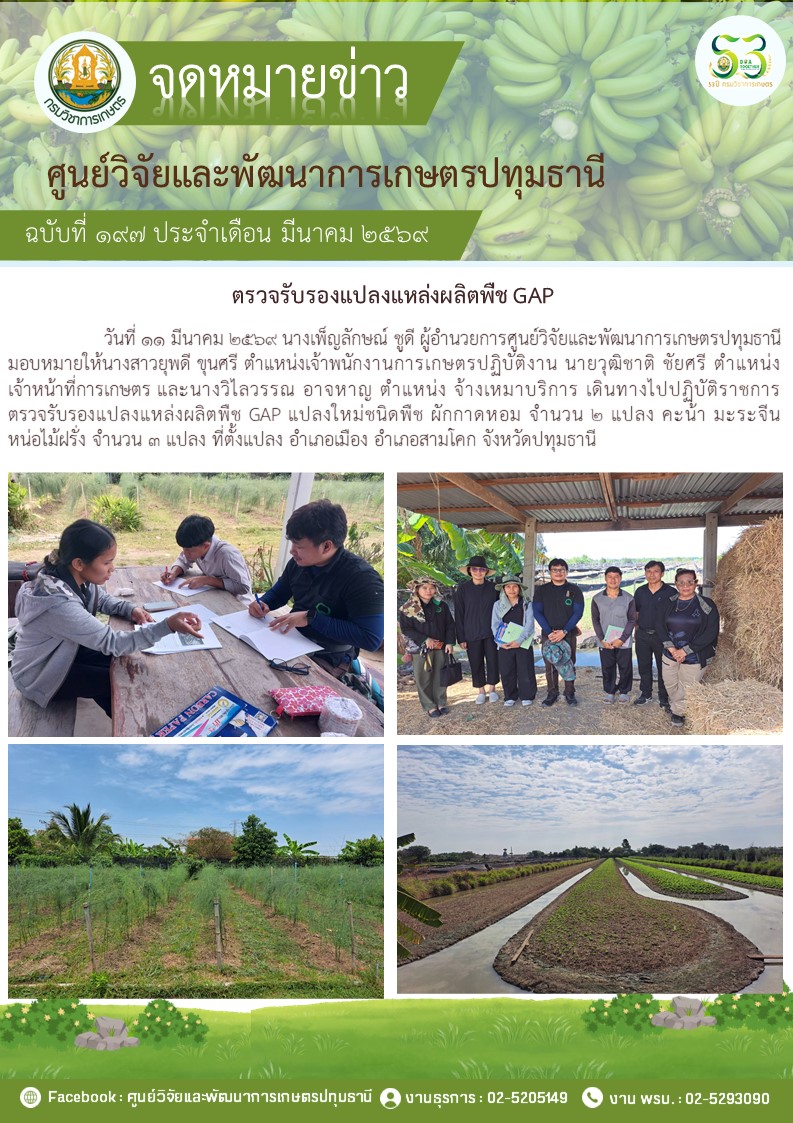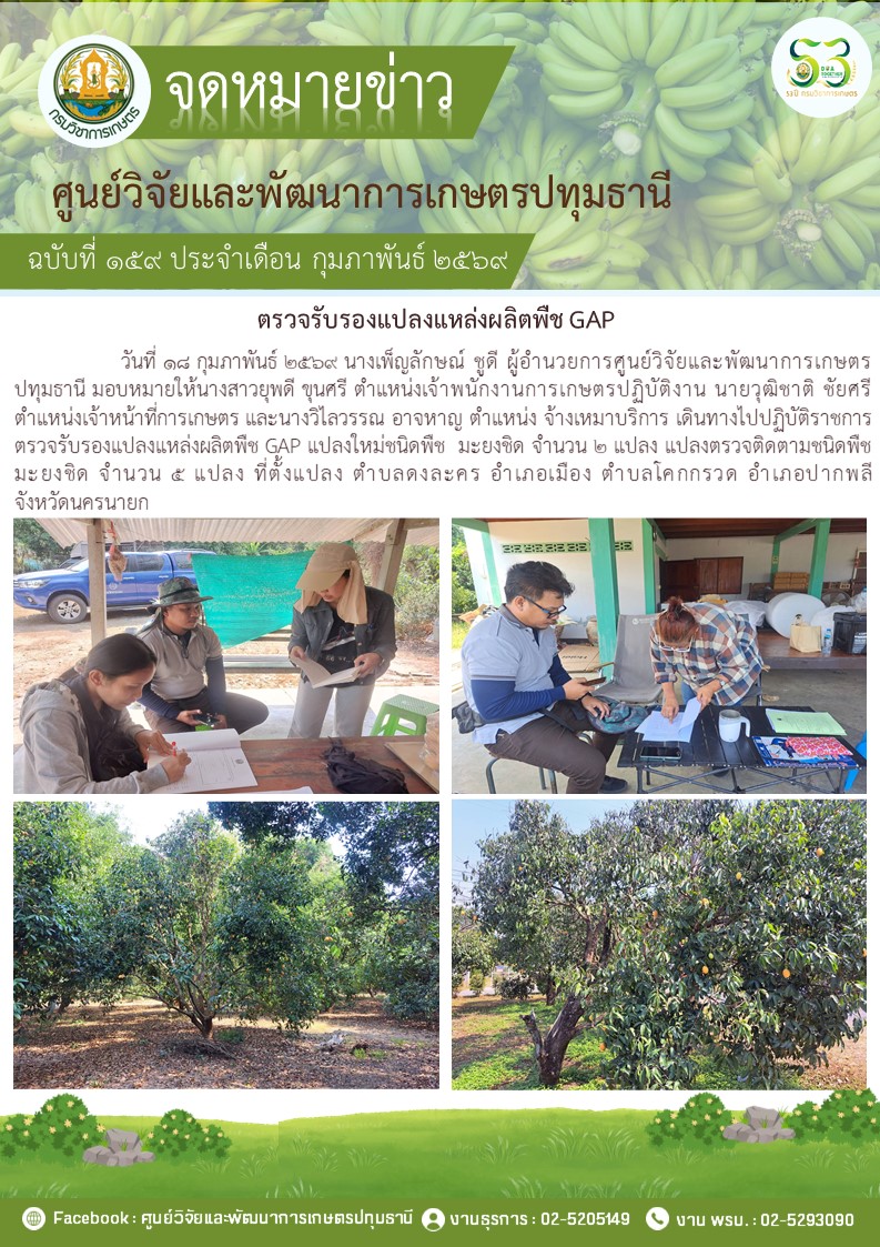 ตรวจรับรองแปลงแหล่งผลิตพืช GAP แปลงใหม่ 4 แปลง