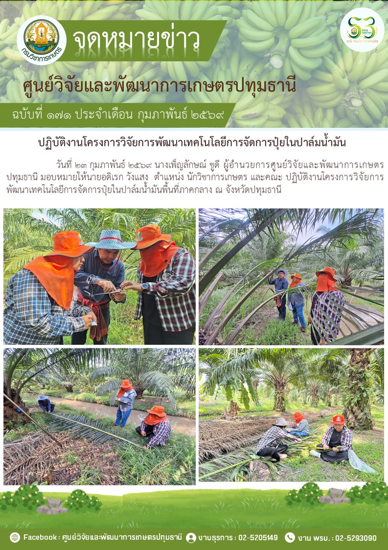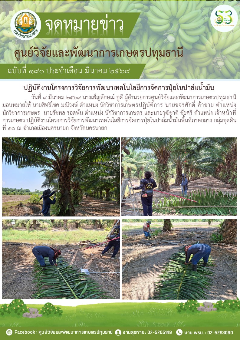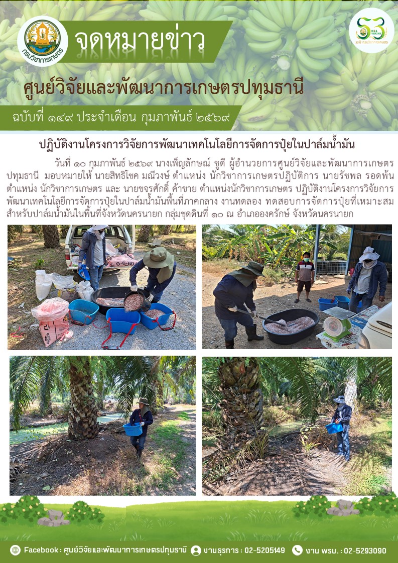 ปฎิบัติงานโครงการวิจัยการพัฒนาเทคโนโลยีการจัดการปุ๋ยในปาล์มนํ้ามัน