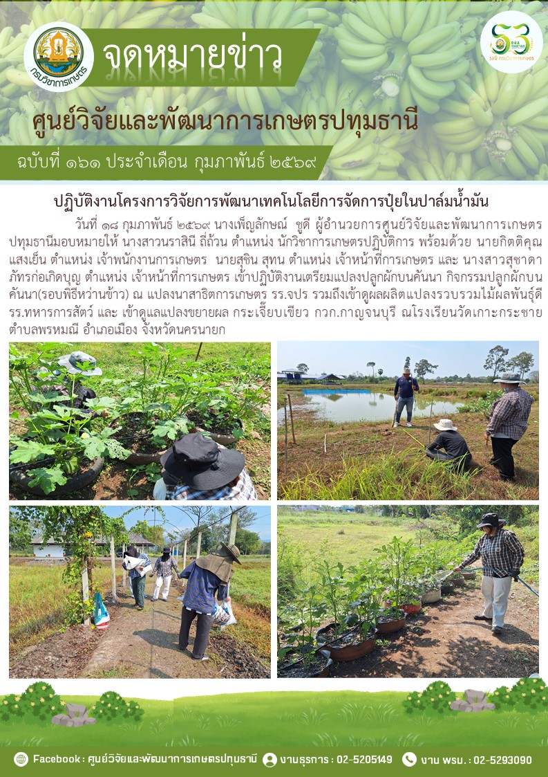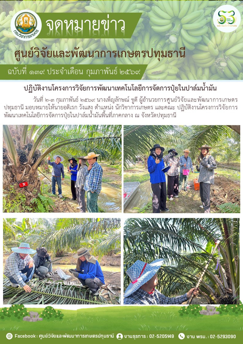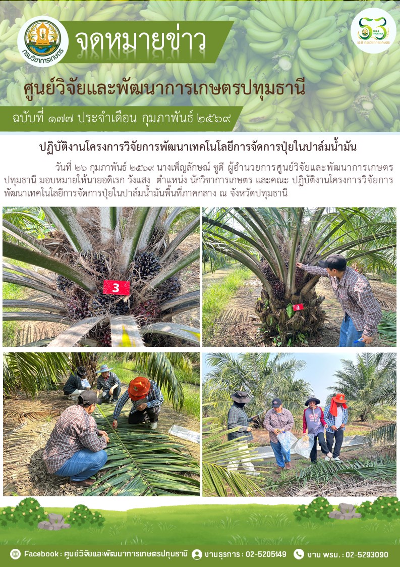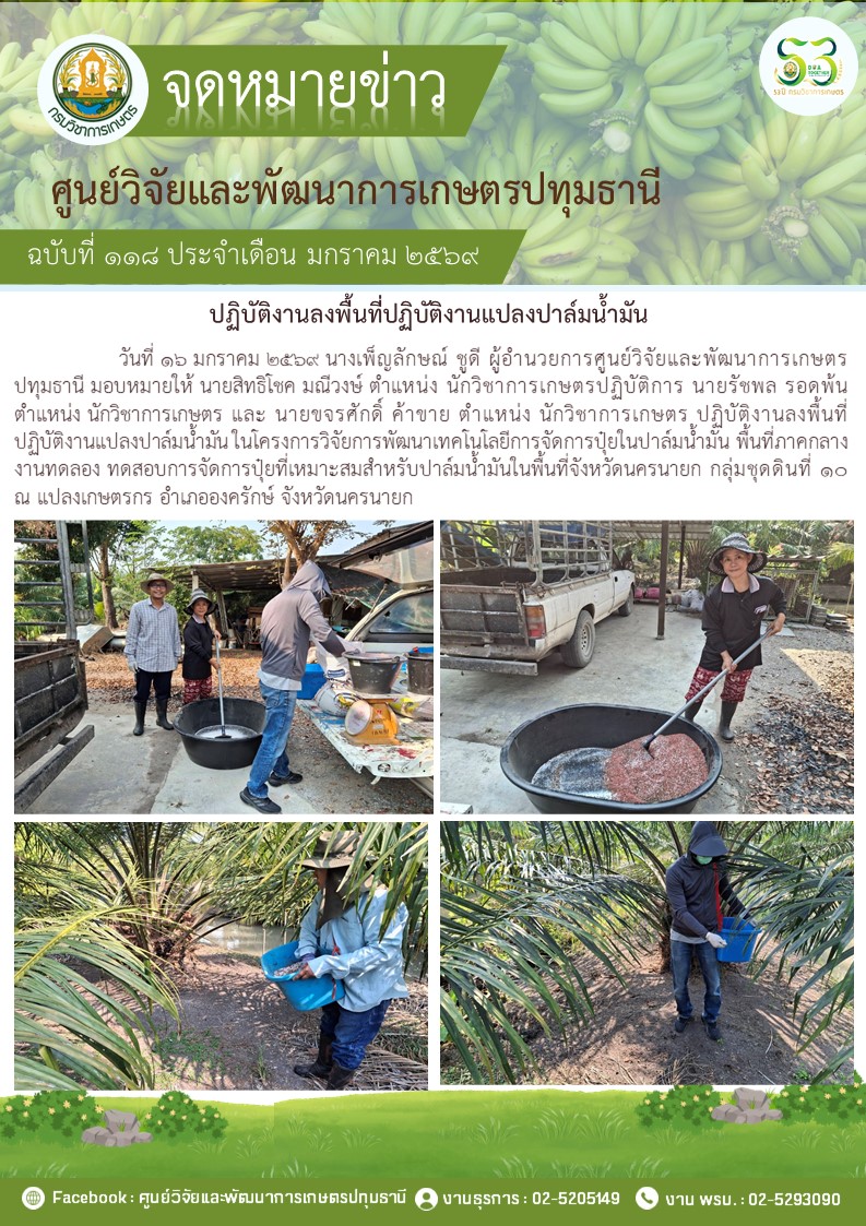 ปฎิบัติงานโครงการวิจัยการพัฒนาเทคโนโลยีการจัดการปุ๋ยในปาล์มนํ้ามัน