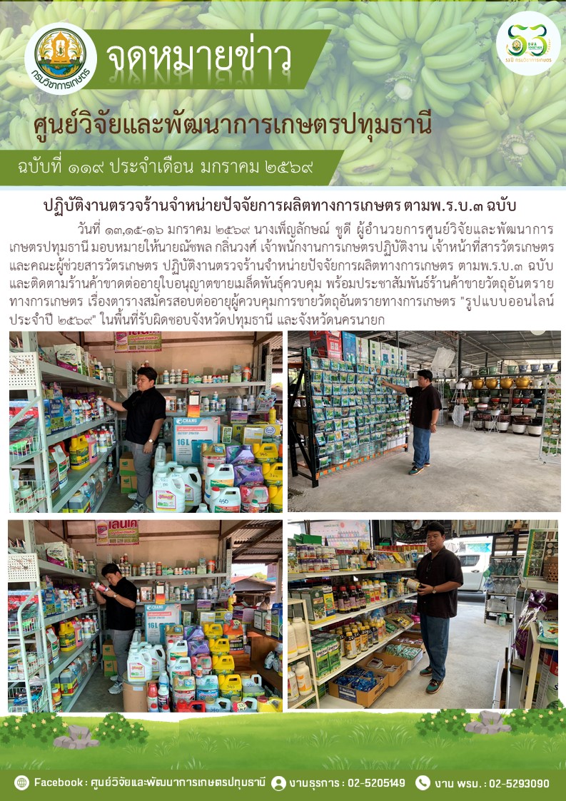 ตรวจร้านจำหน่ายปัจจัยการผลิตทางการเกษตรตาม พ.ร.บ.