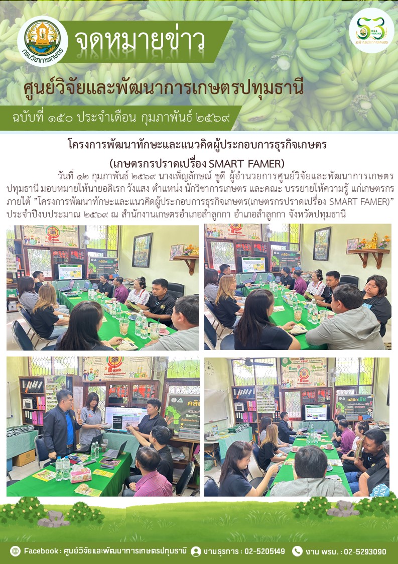 โครงการพัฒนาทักษะและแนวคิดผู้ประกอบการธุรกิจเกษตร