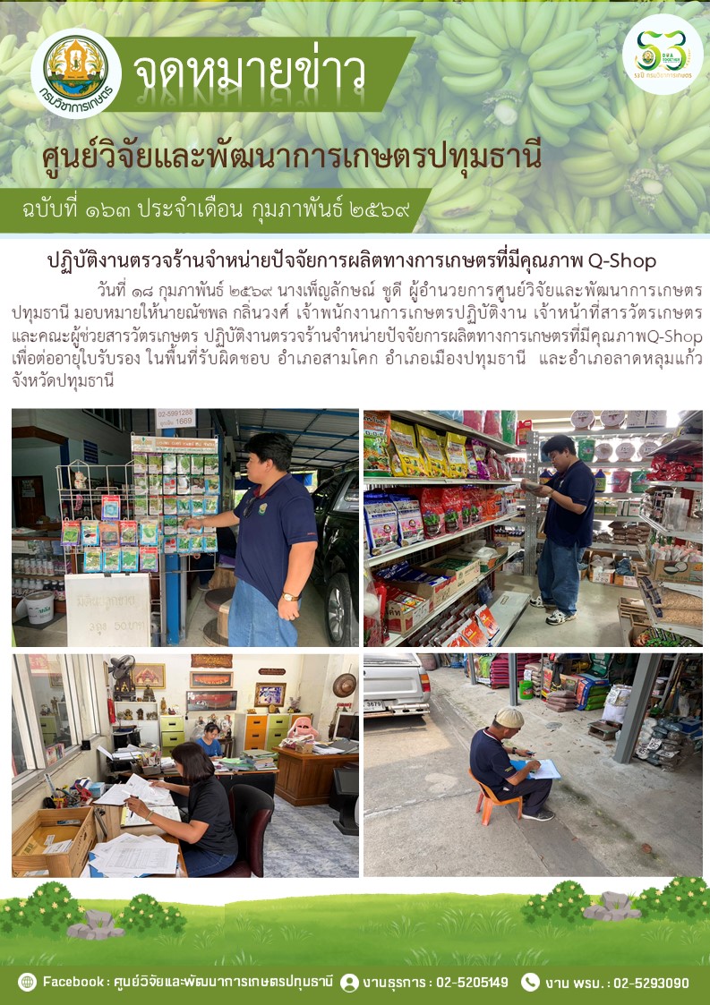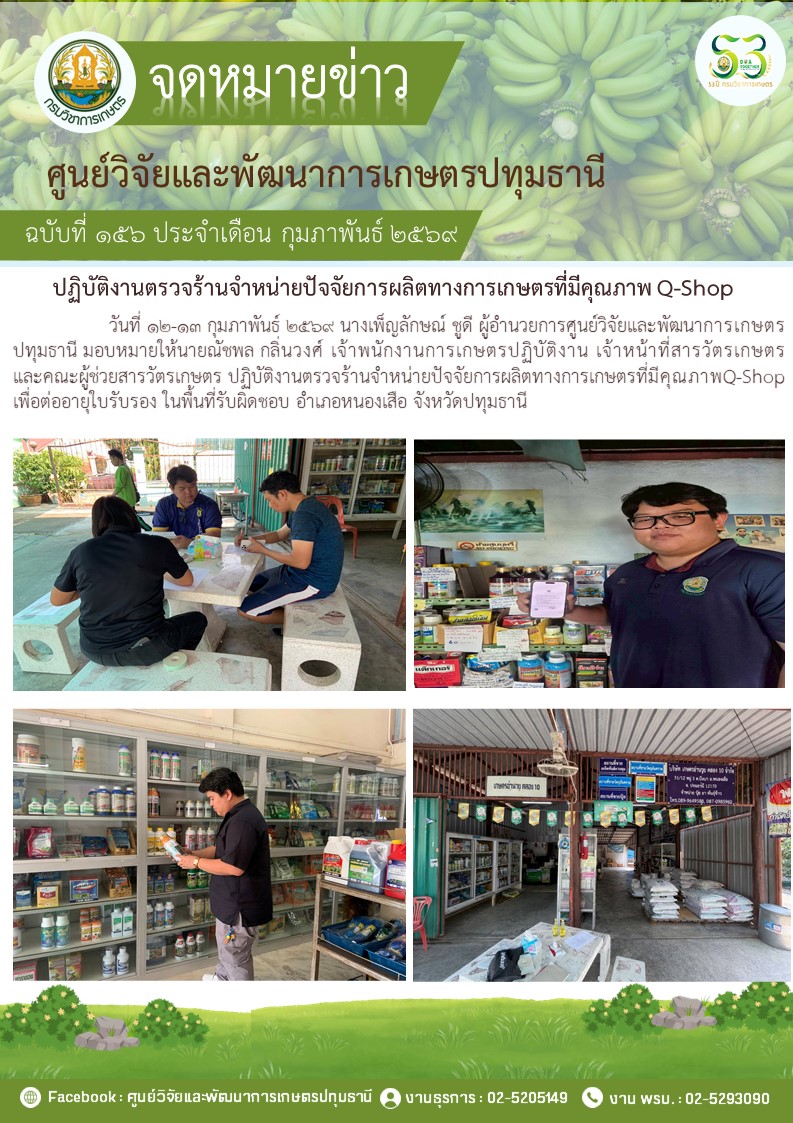 ปฎิบัติงานตรวจร้านจําหน่ายปัจจัยการผลิตทางการเกษตรที่มีคุณภาพ Q-Shop