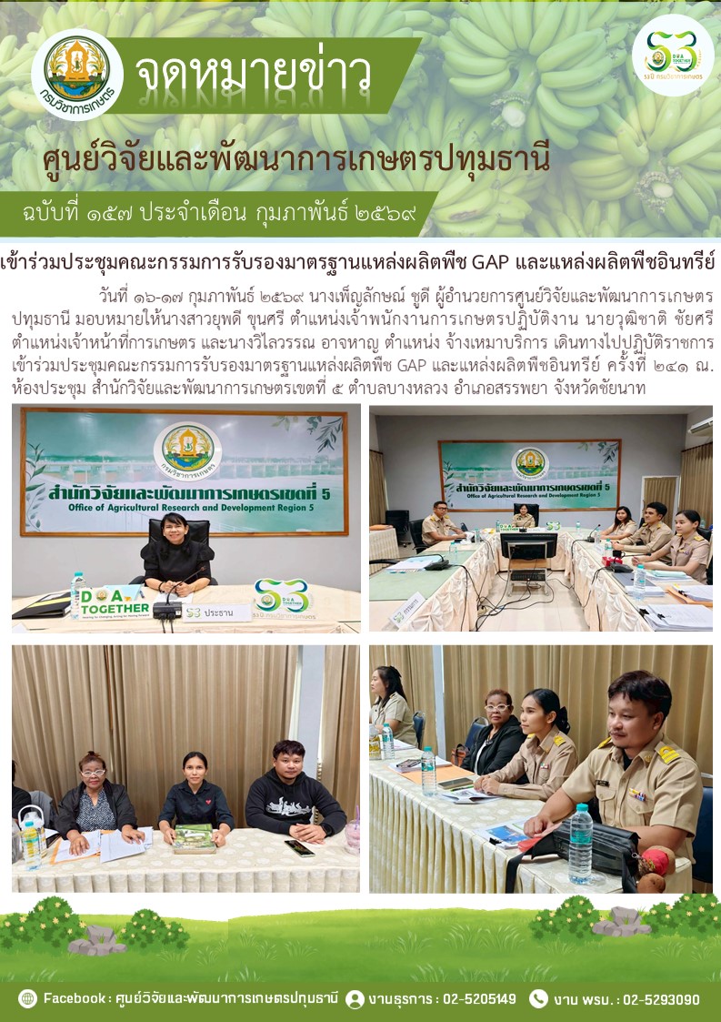 ร่วมประชุมคณะกรรมการวิจัยและพัฒนาสำนักวิจัยและพัฒนาการเกษตรเขตที่ 5 ครั้งที่ 2/2567