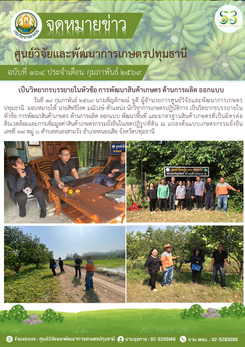 เป็นวิทยากรบรรยายในหัวข้อ การพัฒนาสินค้าเกษตร ด้านการผลิต ออกแบบ