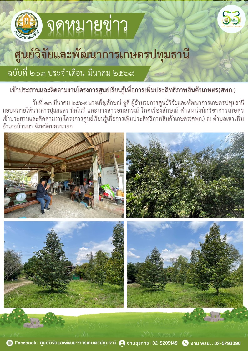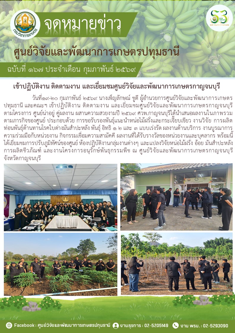 เข้าปฎิบัติงาน ติดตามงาน และเยี่ยมชมศูนย์วิจัยและพัฒนาการเกษตรกาญจนบุรี