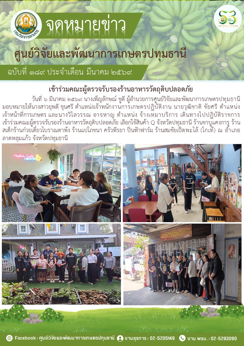 เข้าร่วมคณะผู้ตรวจรับรองร้านอาหารวัตถุดิบปลอดภัย