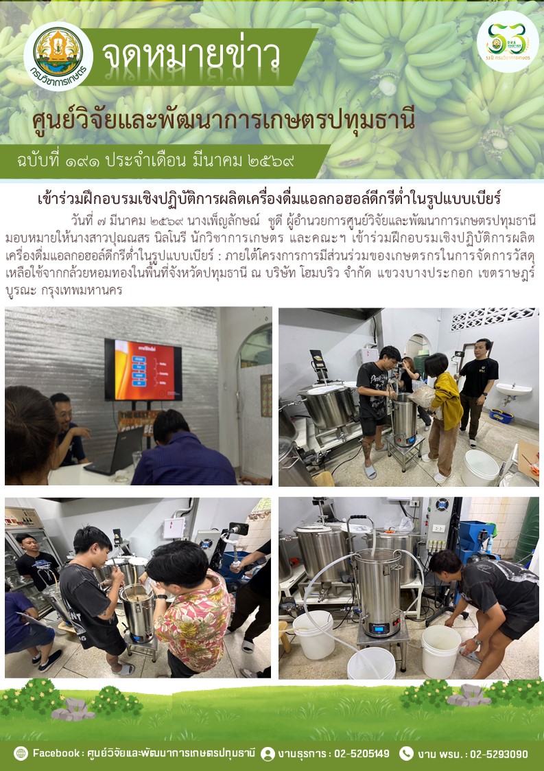 เข้าร่วมฝึกอบรมเชิงปฎิบัติการผลิตเครื่องดื่มแอลกอฮอร์ดีกรีต่ำในรูปแบบเบียร์