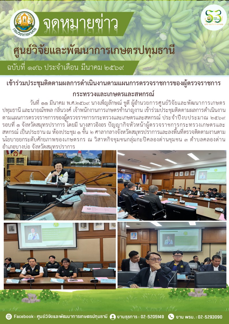 เข้าร่วมประชุมติดตามผลการดำเนินงานตามแผนการตรวจราชการของผู้ตรวจราชการกระทรวงเกษตรและสหกรณ์