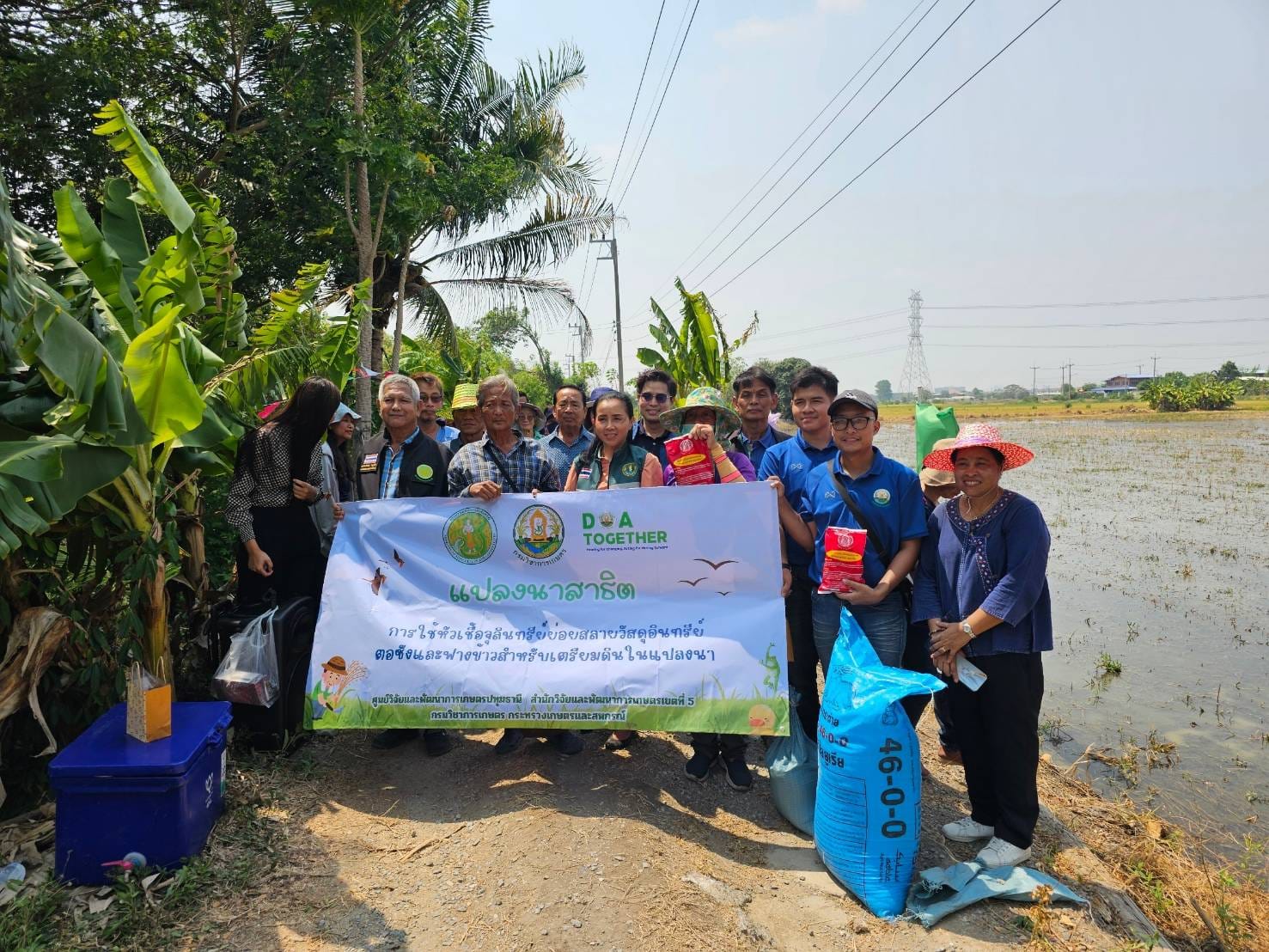 วันที่ 2 พฤษภาคม พ.ศ.2567 นายเกรียงศักดิ์ ชาติปรีดี ผู้อำนวยการศูนย์วิจัยและพัฒนาการเกษตรปทุมธานี และคณะฯ เข้าร่วมโครงการอาสาสมัครท้องถิ่นรักษ์โลก (อถล.) ชมสาธิตกิจกรรมเชิงปฏิบัติการ "การแก้ไขฝุ่น PM 2.5 โดยการลดการเผาพื้นที่เกษตร โดยใช้จุลินทรีย์ย่อยสลายตอซัง" จากนางสุปราณี มั่นหมาย นักวิชาการเกษตรชำนาญการพิเศษ กองวิจัยพัฒนาปัจจัยการผลิตทางการเกษตร ณ ที่ทำการผู้ใหญ่บ้านหมู่ที่ 1 ต.บางคูวัด อ.เมืองปทุมธานี จ.ปทุมธานี แนะแนวเรื่อง ตรวจรับรองแปลงแหล่งผลิตพืช GAP ร่วมโครงการ บรรพชาสามเณรภาคฤดูร้อน