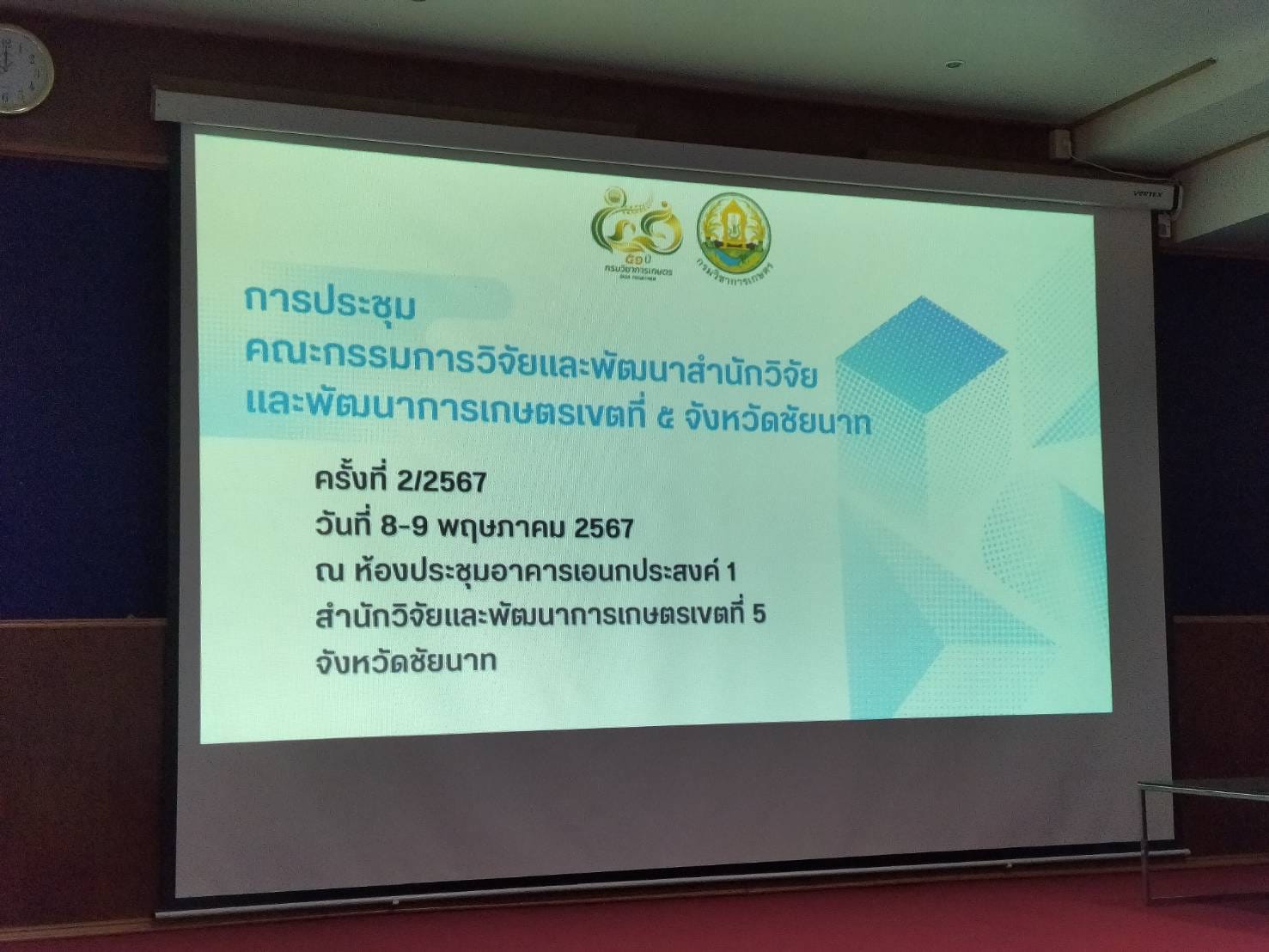 วันที่ 8-9 พฤษภาคม 2567 นายเกรียงศักดิ์ ชาติปรีดี ผู้อำนวยการศูนย์วิจัยและพัฒนาการเกษตรปทุมธานี และคณะฯ เข้าร่วมประชุมคณะกรรมการวิจัยและพัฒนาสำนักวิจัยและพัฒนาการเกษตรเขตที่ 5 ครั้งที่ 2/2567 ณ ห้องประชุมอาคารอเนกประสงค์ 1 สำนักวิจัยและพัฒนาการเกษตรเขตที่ 5 จังหวัดชัยนาท แนะแนวเรื่อง โครงการเทคโนโลยีการผลิตไม้ดอกที่เหมาะสม ในพื้นที่ภาคกลางและภาคตะวันตก ติดตามงานวิจัยการเพิ่มประสิทธิภาพการผลิตข้าวโพดหวานและการป้องกันกำจัดหนอนกระทู้ข้าวโพดลายจุดด้วยวิธีผสมผสาน