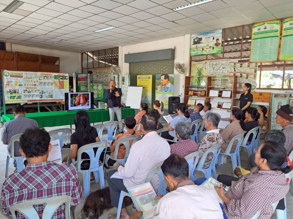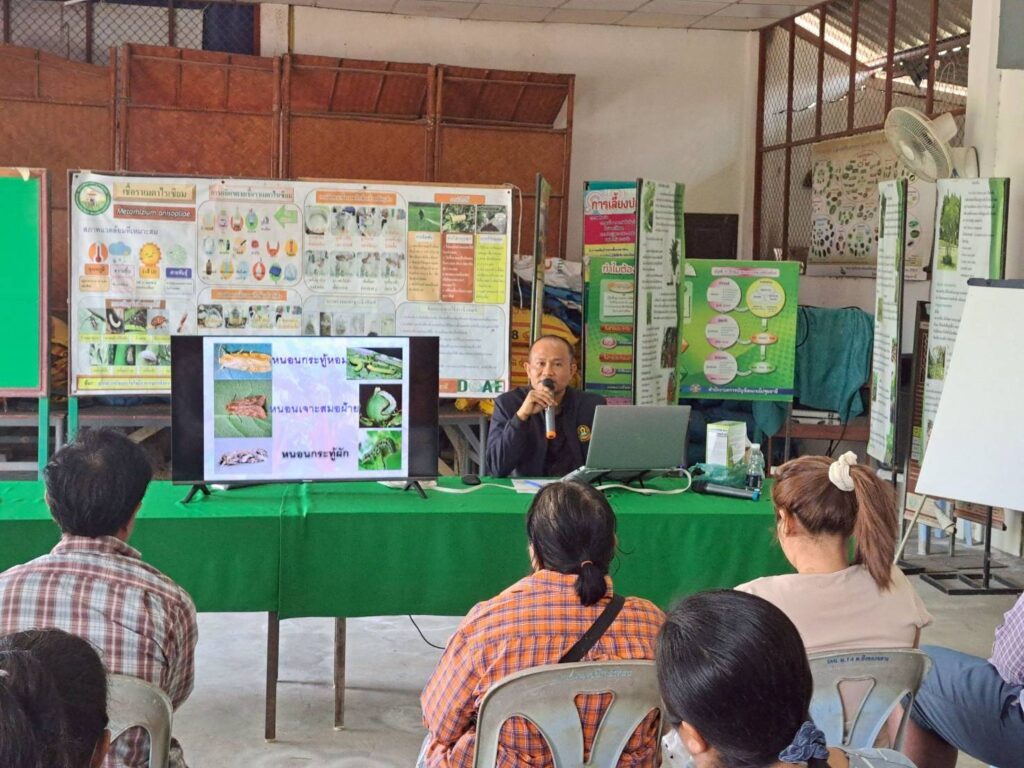 นางเพ็ญลักษณ์ ชูดี ผู้อำนวยการศูนย์วิจัยและพัฒนาการเกษตรปทุมธานี มอบหมายให้ นายรัชพล รอดพ้น ตำแหน่ง นักวิชาการเกษตร เป็นวิทยากรบรรยายถ่ายทอดความรู้การใช้สารเคมีทางการเกษตร อย่างถูกต้อง และปลอดภัย ณ ที่ทำการแปลงใหญ่หมากเหลือง หมู่ 14 ตำบลบึงทองหลาง อำเภอลำลูกกา จังหวัดปทุมธานี จำนวนเกษตรกร 30 ราย