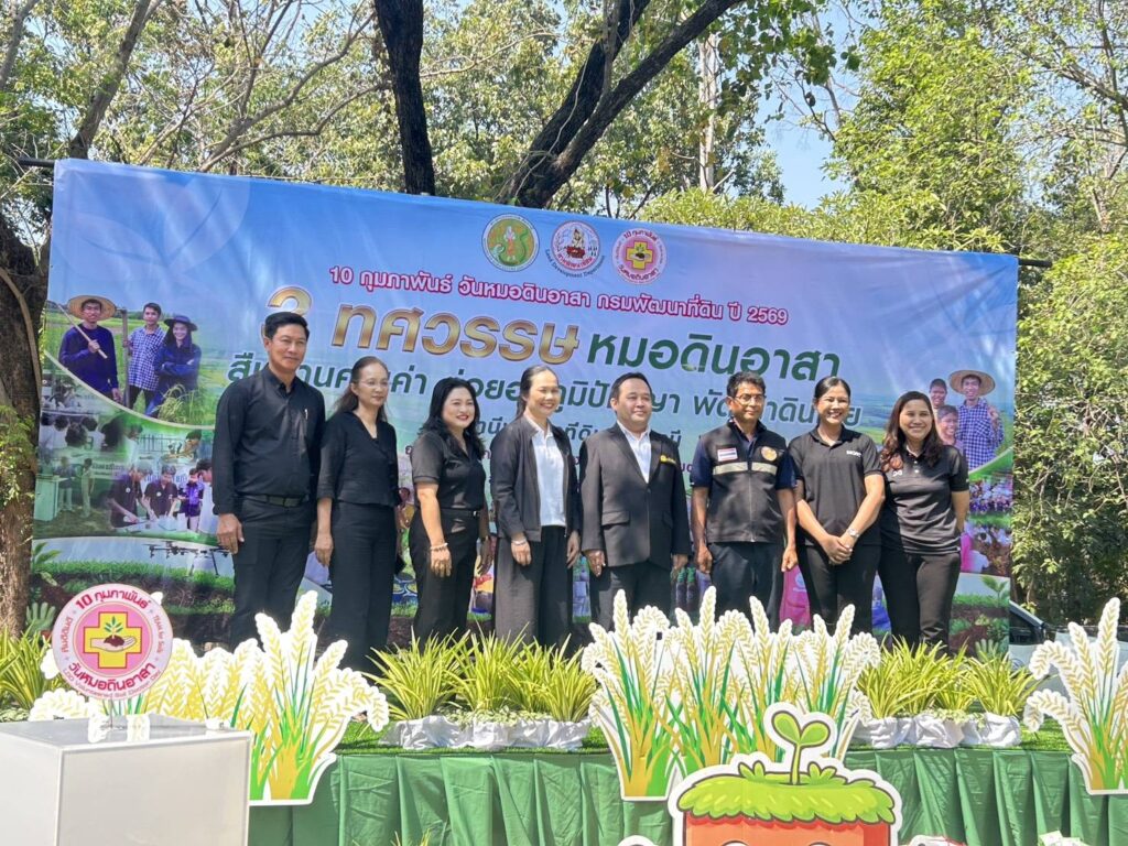 วันที่ 10 กุมภาพันธ์ 2569 นางเพ็ญลักษณ์ ชูดี ผู้อำนวยการศูนย์วิจัยและพัฒนาการเกษตรปทุมธานี มอบหมายให้นางสาวนัทธ์ชลันทร ฐาน์กาญจน์ นักวิชาการเกษตรชำนาญการ และคณะ ร่วมจัดนิทรรศการ 3 ทศวรรษ หมอดินอาสา สืบสานคุณค่า ต่อยอดภูมิปัญญา พัฒนาดินไทย ณ สถานีพัฒนาที่ดินปทุมธานี ต.ลำผักกูด อ.ธัญบุรี จ.ปทุมธานี