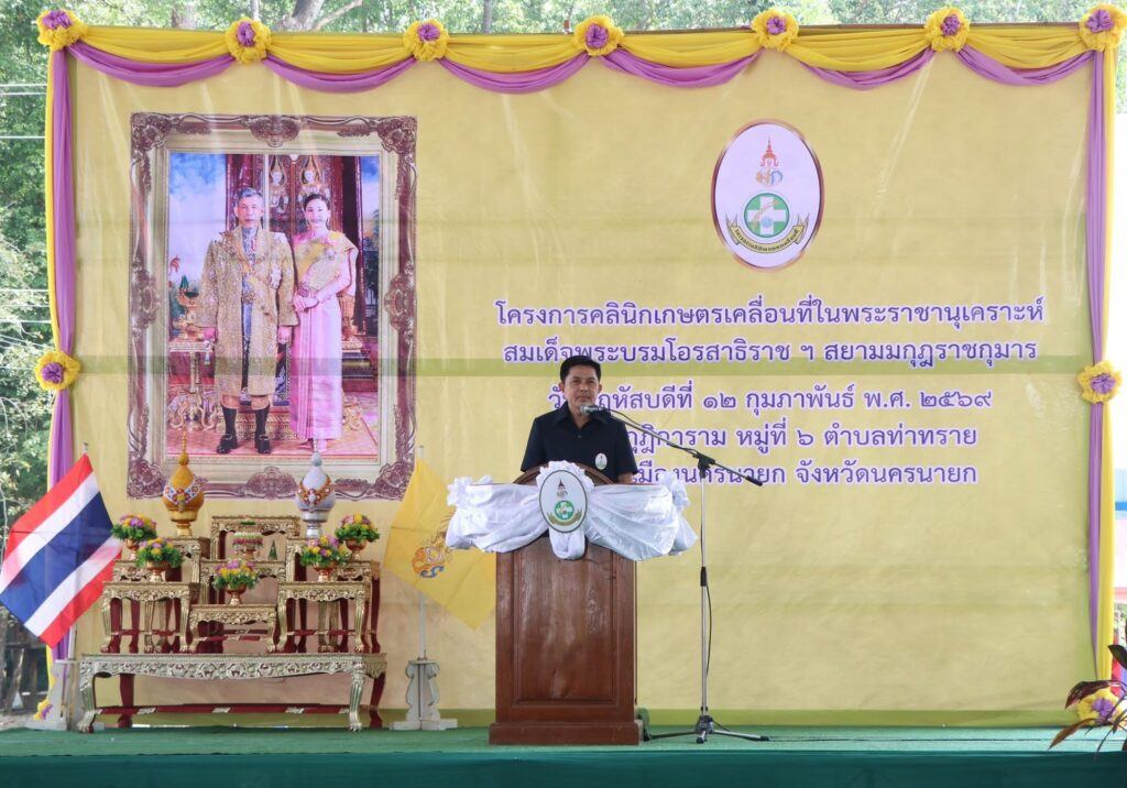 นางเพ็ญลักษณ์ ชูดี ผู้อำนวยการศูนย์วิจัยและพัฒนาการเกษตรปทุมธานี มอบหมายให้ นางสาวอมลกรณ์ โภคเรืองลักษณ์ นักวิชาการเกษตร และคณะฯ เข้าร่วมจัดงานโครงการคลินิกเกษตรเคลื่อนที่ในพระราชานุเคราะห์สมเด็จพระบรมโอรสาธิราช สยามมกกุฏราชกุมาร ประจำปีงบประมาณ พ.ศ. 2569 ไตรมาสที่ 2 โดยมี นายชานน วาสิกศิริ ผู้ว่าราชการจังหวัดนครนายก เป็นประธานในพิธีเปิด ณ วัดกุฏิการาม ตำบลท่าทราย อำเภอเมืองนครนายก จังหวัดนครนายก