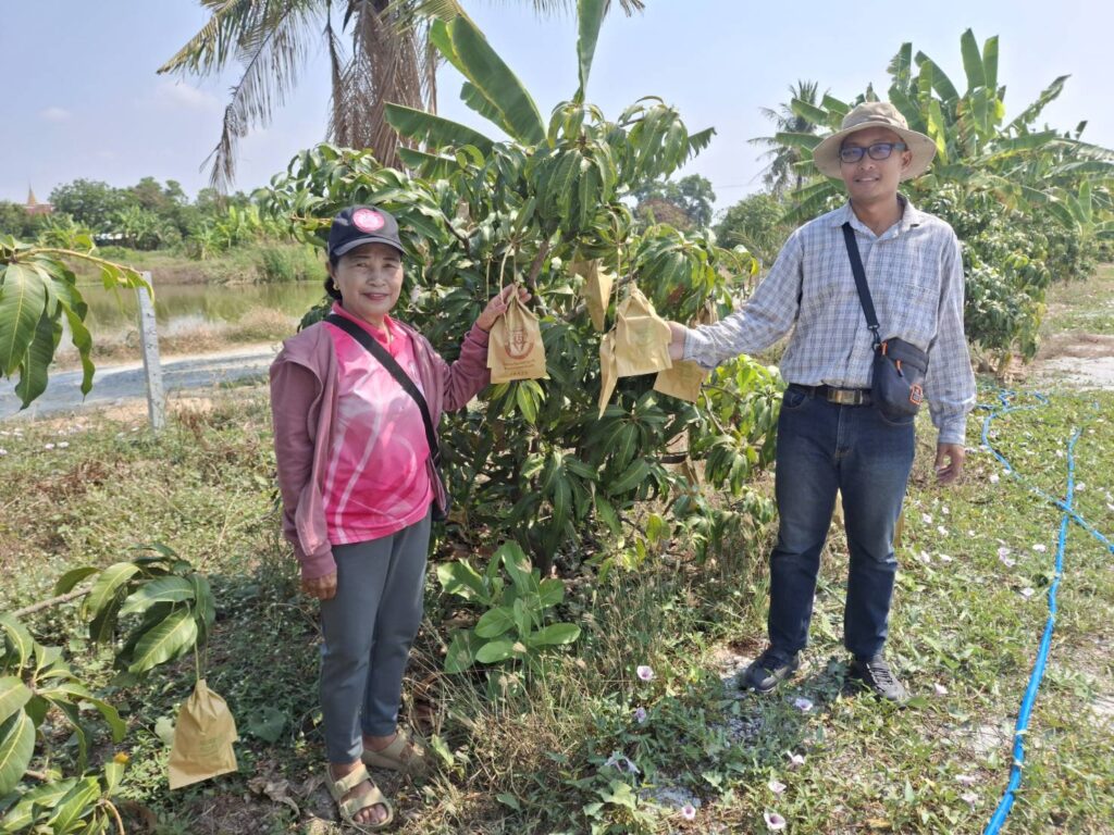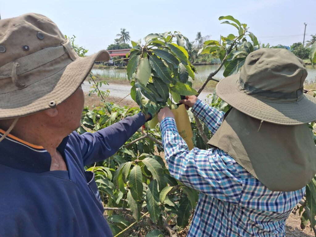 นางเพ็ญลักษณ์ ชูดี ผู้อำนวยการศูนย์วิจัยและพัฒนาการเกษตรปทุมธานี มอบหมายให้ นายสิทธิโชค มณีวงษ์ ตำแหน่ง นักวิชาการเกษตรปฏิบัติการ นายขจรศักดิ์ ค้าขาย ตำแหน่ง นักวิชาการเกษตร และนายรัชพลรอดพ้น ตำแหน่ง นักวิชาการเกษตร ปฏิบัติงานโครงการวิจัยการขยายผลเทคโนโลยีการผลิตมะม่วงน้ำดอกไม้ ที่เหมาะสมในพื้นที่จังหวัด สมุทรปราการ ณ แปลงเกษตรกร อำเภอบางบ่อ จังหวัดสมุทรปรากา