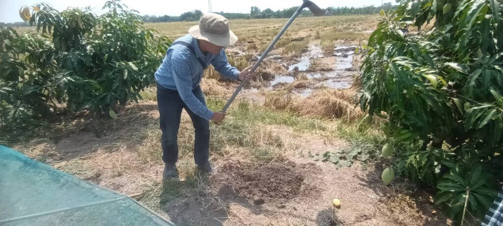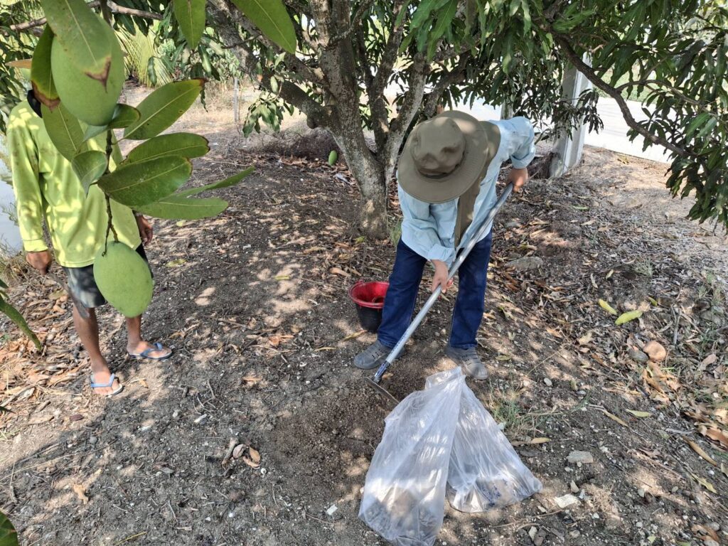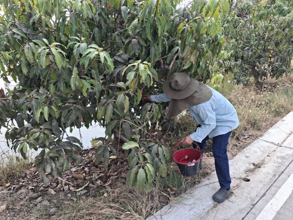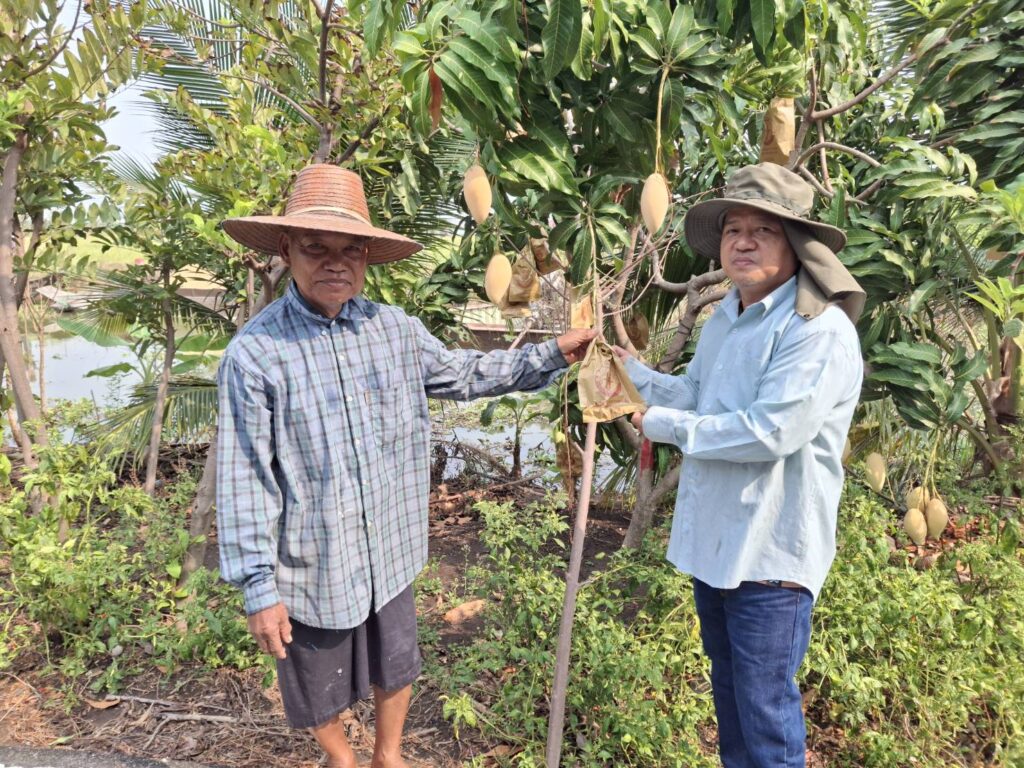 นางเพ็ญลักษณ์ ชูดี ผู้อำนวยการศูนย์วิจัยและพัฒนาการเกษตรปทุมธานี มอบหมายให้ นายสิทธิโชค มณีวงษ์ ตำแหน่ง นักวิชาการเกษตรปฏิบัติการ และนายขจรศักดิ์ ค้าขาย ตำแหน่ง นักวิชาการเกษตร ปฏิบัติงานโครงการวิจัยการขยายผลเทคโนโลยีการผลิตมะม่วงน้ำดอกไม้ ที่เหมาะสมในพื้นที่จังหวัด สมุทรปราการ ณ แปลงเกษตรกร อำเภอบางบ่อ จังหวัดสมุทรปราการ