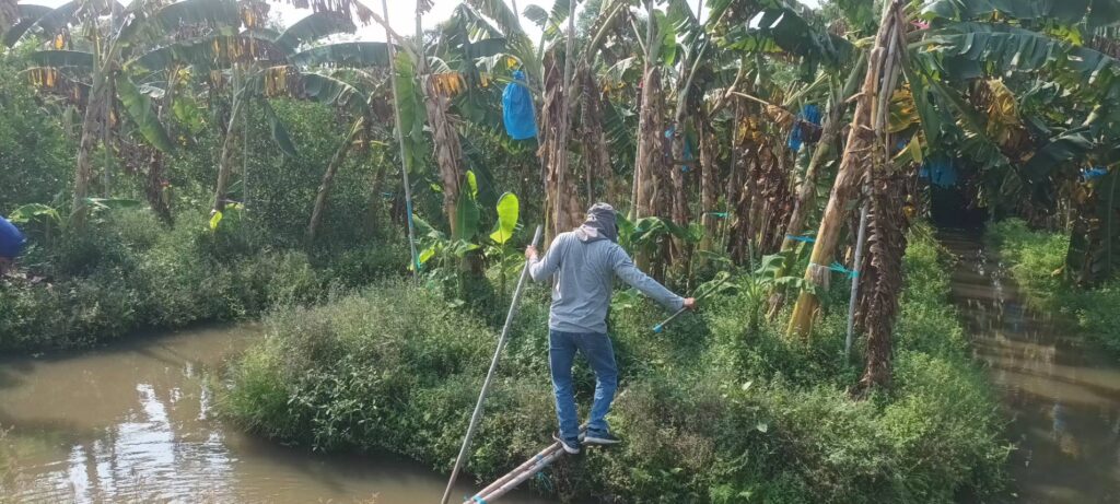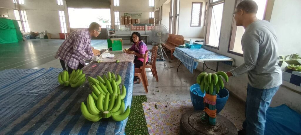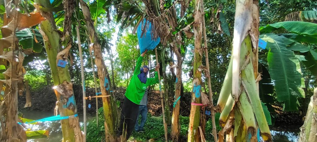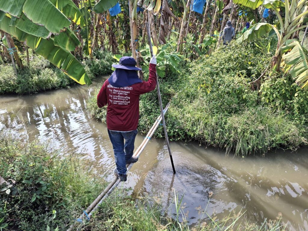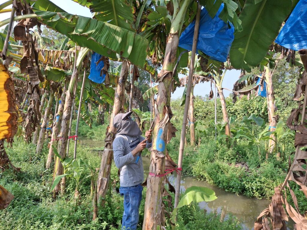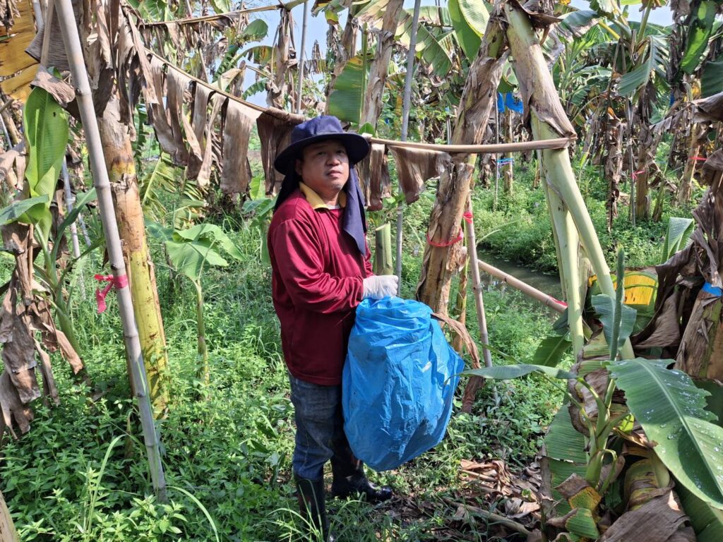 นางเพ็ญลักษณ์ ชูดี ผู้อำนวยการศูนย์วิจัยและพัฒนาการเกษตรปทุมธานี มอบหมายให้ นายสิทธิโชค มณีวงษ์ ตำแหน่ง นักวิชาการเกษตรปฏิบัติการ นายรัชพล รอดพ้น ตำแหน่ง นักวิชาการเกษตร และ นายขจรศักดิ์ ค้าขาย ตำแหน่งนักวิชาการเกษตร ปฏิบัติงานโครงการวิจัยการขยายผลเทคโนโลยีการผลิตกล้วยหอมที่เหมาะสมในพื้นที่จังหวัดปทุมธานี ณ แปลงเกษตรกร อำเภอหนองเสือ จังหวัดปทุมธานี