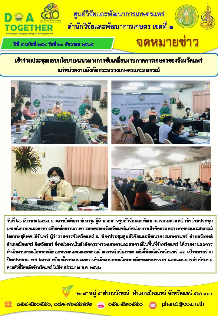 เข้าร่วมประชุมมอบนโยบาย/แนวทางการขับเคลื่อนงานภาคการเกษตรของจังหวัดแพร่ แก่หน่วยงานสังกัดกระทรวงเกษตรและสหกรณ์ 20 ธันวาคม 2022 pharedoa Slides Show