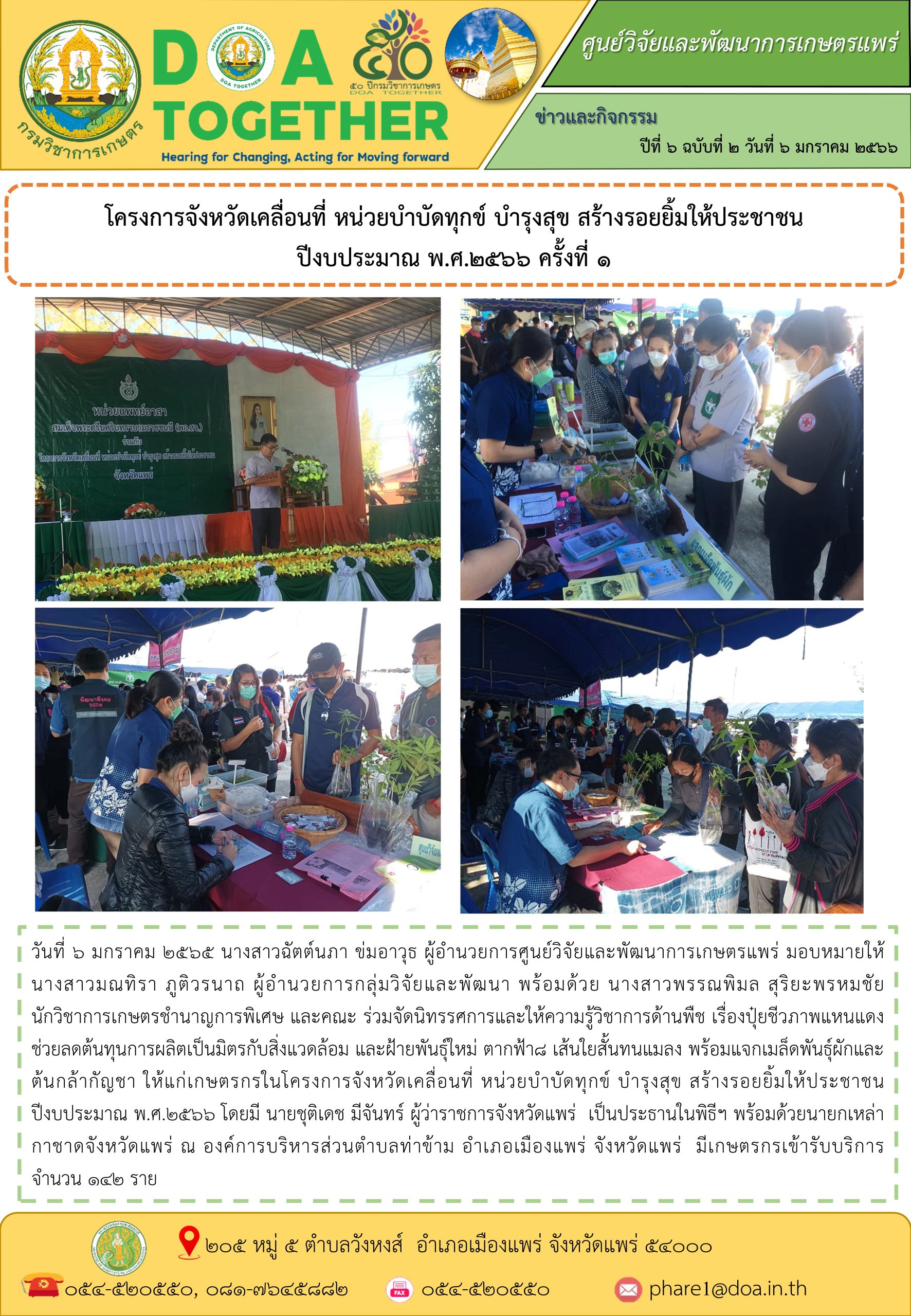 โครงการจังหวัดเคลื่อนที่ หน่วยบำบัดทุกข์ บำรุงสุข สร้างรอยยิ้มให้ประชาชน ปีงบประมาณ พ.ศ.2566 ครั้งที่ 1 3 มกราคม 2023 pharedoa ข่าวกิจกรรม