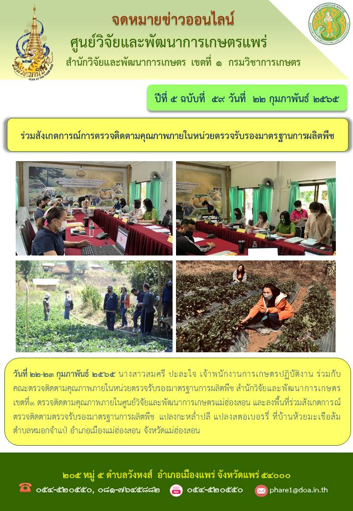 ร่วมสังเกตการณ์การตรวจติดตามคุณภาพภายในหน่วยตรวจรับรองมาตรฐานการผลิตพืช 22 กุมภาพันธ์ 2022 pharedoa ข่าวกิจกรรม