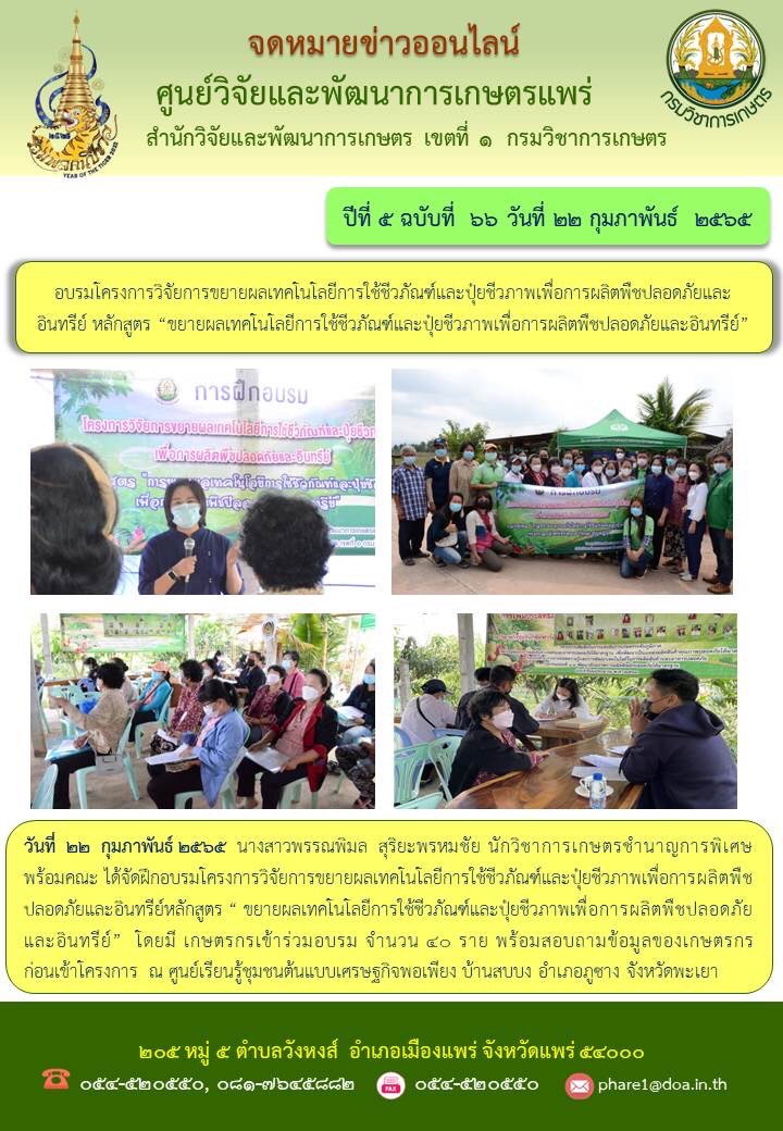 อบรมโครงการวิจัยการขยายผลเทคโนโลยีการใช้ชีวภัณฑ์และปุ๋ยชีวภาพเพื่อการผลิตพืชปลอดภัยและอินทรีย์ หลักสูตร “ขยายผลเทคโนโลยีการใช้ชีวภัณฑ์และปุ๋ยชีวภาพเพื่อการผลิตพืชปลอดภัยและอินทรีย์” 22 กุมภาพันธ์ 2022 pharedoa ข่าวกิจกรรม