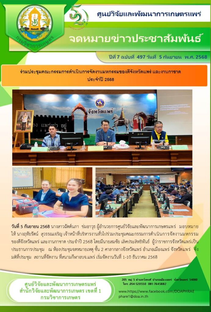ร่วมประชุมคณะกรรมการดำเนินการจัดงานมหกรรมของดีจังหวัดแพร่ และงานกาชาด ประจำปี 2568 5 กันยายน 2025 pharedoa ข่าวกิจกรรม จำนวนคนดู 3 FacebookFacebookXXLINELine