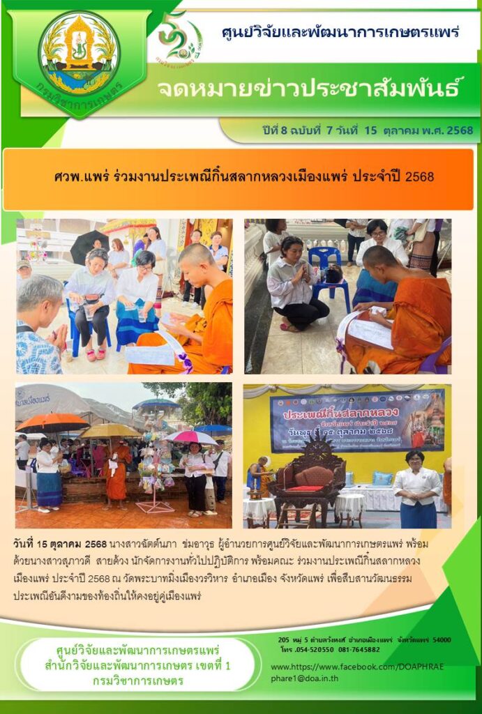 ศวพ.แพร่ ร่วมงานประเพณีกิ๋นสลากหลวงเมืองแพร่ ประจำปี 2568 15 ตุลาคม 2025 pharedoa ข่าวกิจกรรม จำนวนคนดู 3 FacebookFacebookXXLINELine