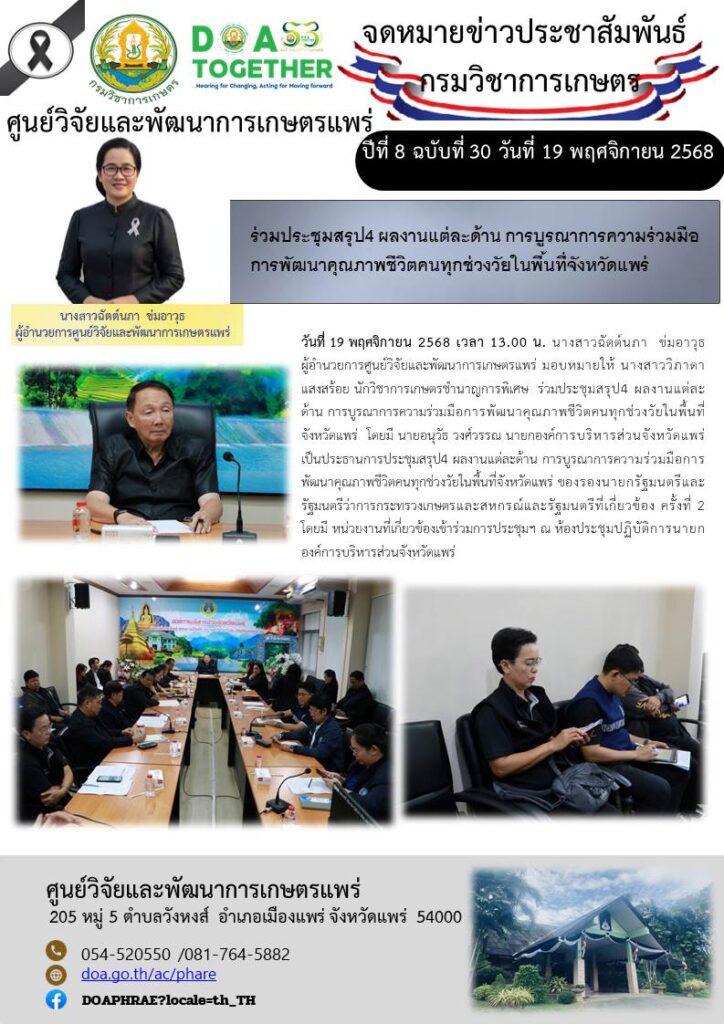 ร่วมประชุมสรุป4 ผลงานแต่ละด้าน การบูรณาการความร่วมมือการพัฒนาคุณภาพชีวิตคนทุกช่วงวัยในพื้นที่จังหวัดแพร่ 19 พฤศจิกายน 2025 pharedoa ข่าวกิจกรรม จำนวนคนดู 5 FacebookFacebookXXLINELine