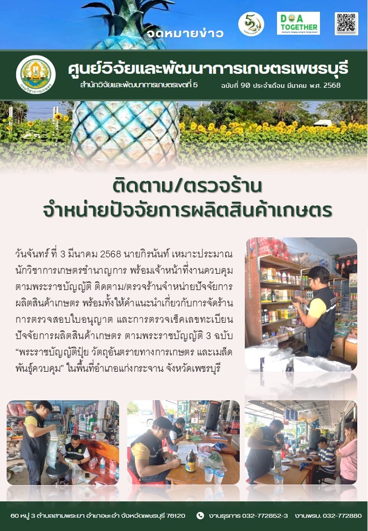 จดหมายข่าว ฉบับข่าวเดือนมีนาคม 2568 by adminphet1 พฤษภาคม 25681 พฤษภาคม 2025 ฉบับข่าวเดือนมีนาคม 2568 FacebookFacebookXXLINELine