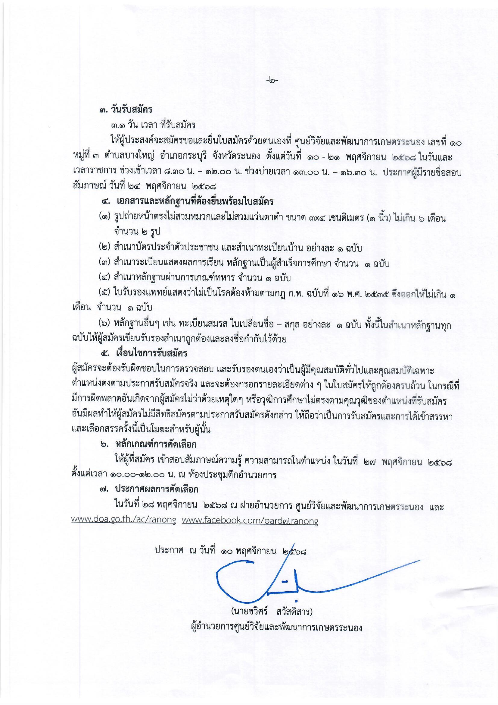 Posted inประกาศ ประกาศศูนย์วิจัยและพัฒนาการเกษตรระนอง Posted by jeerawat 11 พฤศจิกายน 2568 ประกาศศูนย์วิจัยและพัฒนาการเกษตรระนอง เรื่อง การรับสมัครพนักงานจ้างเหมาบริการ #สมัครงาน #จ้างเหมาบริการ FacebookFacebookXXLINELine jeerawat View All Posts Post navigation Previous Post รองนายกรัฐมนตรีและรมว.เกษตรและสหกรณ์ (ร้อยเอกธรรมนัส พรหมเผ่า) Kick off การนำสินค้ายางพาราผ่านแดนและเขตควบคุมการขนย้ายยาง พ.ศ.2568