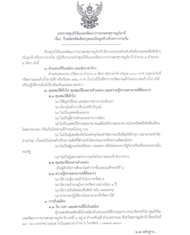 Posted in Uncategorized รับสมัครคัดเลือกบุคคลเป็น “ลูกจ้างชั่วคราวรายวัน” ตำแหน่ง “คนงาน(กรีดยาง)” 2 อัตรา Author: Surat_ARDC Published Date: 13 มกราคม 2565 FacebookFacebookXXLINELine Author: Surat_ARDC