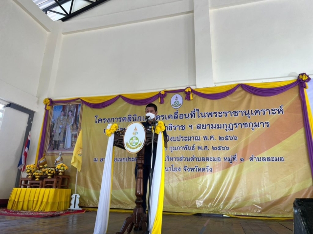 วันที่ 20 กุมภาพันธ์ 2565 นางสาวจัณฑิมา สันติสุข นักวิชาการเกษตรปฏิบัติการ พร้อมด้วยเจ้าหน้าที่ศูนย์วิจัยและพัฒนาการเกษตรตรังเข้าร่วม “โครงการคลินิกเคลื่อนที่ในพระราชานุเคราะห์ สมเด็จพระบรมโอรสาธิราช ฯ สยามมกุฎราชกุมาร ครั้งที่ 2” ประจำปีงบประมาณ พ.ศ. 2566 ณ อาคารอเนกประสงค์องค์การบริหารส่วนตำบลละมอ หมู่ที 1 ต.ละมอ อ.นาโยง จ.ตรัง โดยถ่ายทอดความรู้เรื่องการใช้ชีวภัณฑ์ การขยายพันธุ์แหนแดง ให้คำปรึกษาเกี่ยวกับการผลิตพืช การควบคุมโรคพืชและแจกจ่ายเมล็ดพันธุ์ผักให้แก่เกษตรกรที่สนใจ ณ อาคารอเนกประสงค์องค์การบริหารส่วนตำบลละมอ หมู่ที 1 ต.ละมอ อ.นาโยง จ.ตรัง โดยมีนายขจรศักดิ์ เจริญโสภา ผู้ว่าราชการจังหวัดตรัง เป็นประธานในพิธีเปิด ร่วมกับหน่วยงานราชการและภาคประชาชน