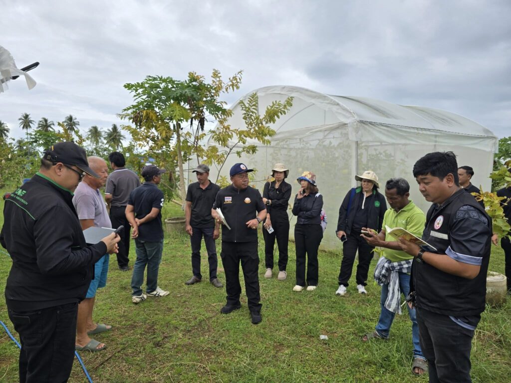 วันที่ 19 พฤศจิกายน 2568 นางสรัญญา ช่วงพิมพ์ ผู้อำนวยการศูนย์วิจัยและพัฒนาการเกษตรตรัง พร้อมด้วยเจ้าหน้าที่ศูนย์ฯ ร่วมกับผู้อำนวยการสถานีพัฒนาที่ดินตรังและเจ้าหน้าที่จากกรมส่งเสริมการเกษตรจังหวัดตรัง ลงพื้นที่สำรวจสภาพปัญหาทางการเกษตรตามข้อสั่งการของรัฐมนตรีว่าการกระทรวงเกษตรและสหกรณ์ ซึ่งมีประเด็นปัญหาด้านการทำการเกษตร ได้แก่ ปัญหาน้ำทางการเกษตรไม่เพียงพอ การทำโรงเรือนระบบปิด การผลิตพืช GAP การพัฒนารูปทรงแตงโมเพื่อเพิ่มมูลค่าผลผลิต ในพื้นที่เกาะสุกร จังหวัดตรัง