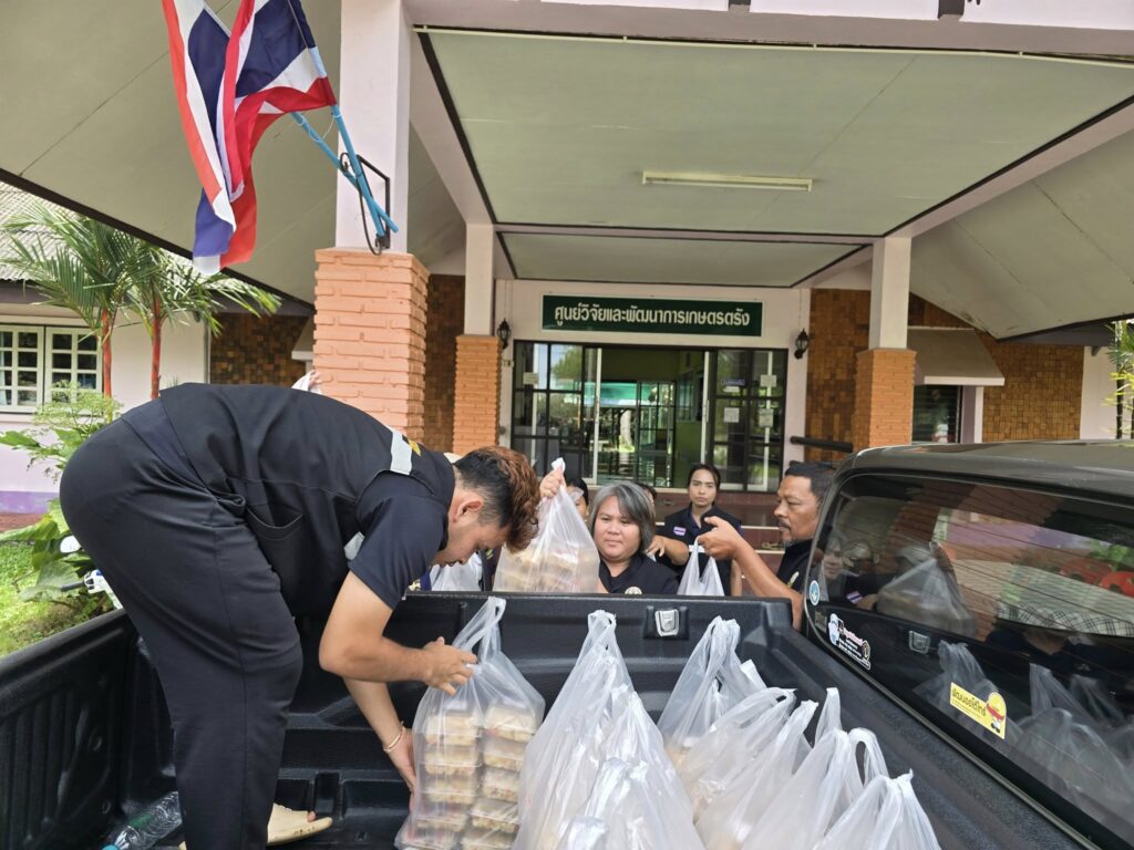 วันพฤหัสบดี ที่ 27 พ.ย. 68 นางสรัญญา ช่วงพิมพ์ ผู้อำนวยการศูนย์วิจัยและพัฒนาการเกษตรตรัง มอบหมายให้ นางจิตชยา พงศาปาน นักจัดการงานทั่วไปชำนาญการ นางสาวลภัสรดา อักษรเนียม นักวิชาการเกษตรชำนาญการ นางสาวจัณฑิมา สันติสุข นักวิชาการเกษตรปฏิบัติการ นายณัฐพล หวันเต๊ะ เจ้าพนักงานการเกษตรปฏิบัติงาน พร้อมด้วยเจ้าหน้าที่ฯ จัดทำข้าวกล่องจำนวน 230 กล่อง มอบให้กับองค์การบริหารส่วนตำบลแหลมสอม นำไปแจกจ่ายช่วยเหลือประชาชนผู้ประสบอุทกภัยจากน้ำป่าไหลหลาก เพื่อบรรเทาความเดือดร้อนแก่ประชาชนในพื้นที่อำเภอปะเหลียน จังหวัดตรัง เป็นการเบื้องต้น