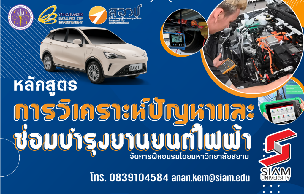 1. หลักสูตรการวิเคราะห์ปัญหาและซ่อมบำรุงยานยนต์ไฟฟ้า สมัครในระบบ Stemplus ที่เวปไซด์ https://boistemplus.boi.go.th/course/23bc9121-ec21-406e-bb31-232bdbc06f01