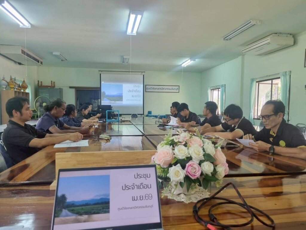 วันพฤหัสบดีที่ 9 เมษายน 2569 ศูนย์วิจัยเกษตรวิศวกรรมจันทบุรี จัดประชุมติดตามผลการดำเนินงานตามแผนงานและงานที่ได้รับมอบหมาย ประจำเดือนเมษายน 2569 ณ ห้องประชุมศูนย์วิจัยเกษตรวิศวกรรมจันทบุรี โดยมีนางสาวพักตร์วิภา สุทธิวารี ผู้อำนวยการศูนย์วิจัยเกษตรวิศวกรรมจันทบุรี เป็นประธานในที่ประชุมพร้อมด้วยข้าราชการและพนักงานราชการ เข้าร่วมประชุมอย่างพร้อมเพรียงกัน โดยมีเรื่องเร่งด่วนที่ต้องปฏิบัติตามนโยบายรัฐบาล เรื่องการประหยัดพลังงานและ Work From Home