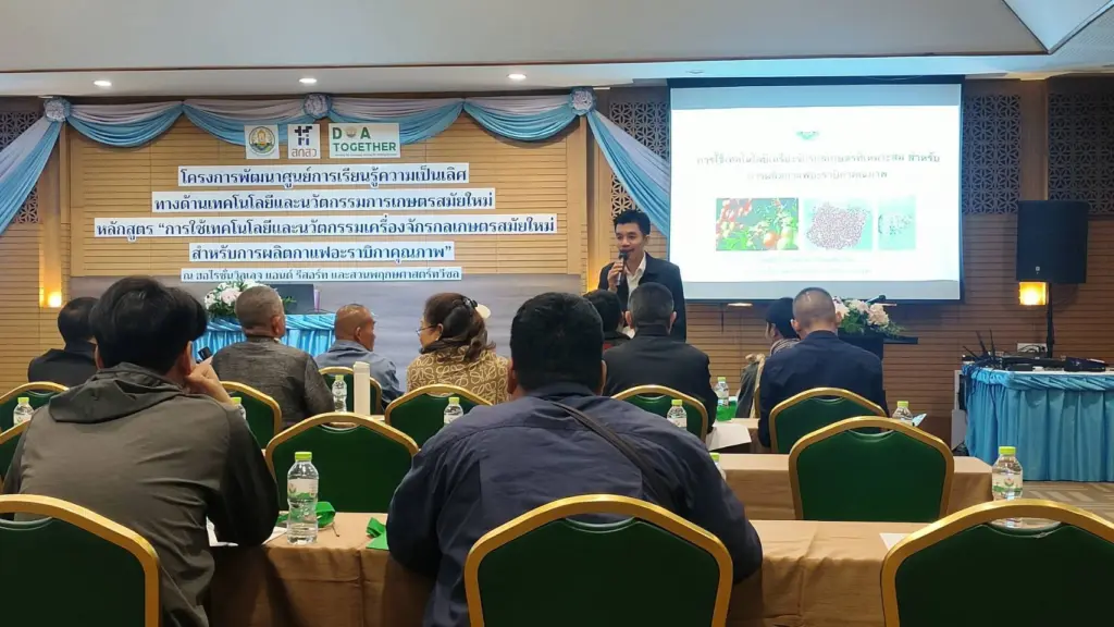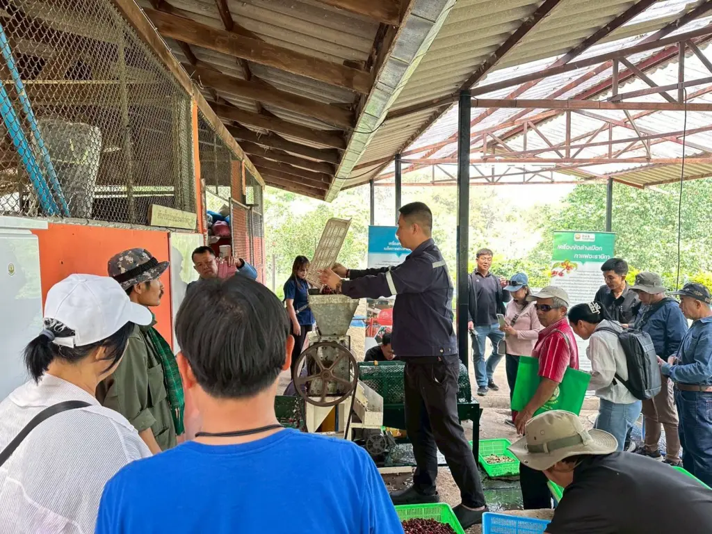 วันที่ 30-31 มีนาคม 2569 ดร.วุฒิพล จันทร์สระคู ผู้อำนวยการสถาบันวิจัยเกษตรวิศวกรรม มอบหมายให้ศูนย์วิจัยเกษตรวิศวกรรมเชียงใหม่ ร่วมกับ ศูนย์วิจัยเกษตรหลวงเชียงใหม่จัดฝึกอบรม จัดฝึกอบรมหลักสูตร “การใช้เทคโนโลยีและนวัตกรรมเครื่องจักรกลเกษตรสมัยใหม่สำหรับการผลิตกาแฟอะราบิกาคุณภาพ” ภายใต้โครงการพัฒนาศูนย์การเรียนรู้ความเป็นเลิศทางด้านเทคโนโลยีและนวัตกรรมการเกษตรสมัยใหม่ ณ สวนพฤกษศาสตร์ทวีชล ตำบลเชิงดอย อำเภอดอยสะเก็ด จังหวัดเชียงใหม่ ให้แก่เกษตรกรผู้ปลูกกาแฟอะราบิกา จำนวน 30 ราย เพื่อสร้างความเข้าใจและการรับรู้เทคโนโลยี การผลิต การแปรรูป และนวัตกรรมเครื่องจักรกลเกษตรสมัยใหม่ สำหรับการผลิตกาแฟอะราบิกาคุณภาพ ได้มีความรู้ครอบคลุมห่วงโซ่การผลิตกาแฟ และเพื่อเสริมสร้างพัฒนาเครือข่ายการเรียนรู้และการขับเคลื่อนการนำเทคโนโลยีและนวัตกรรมเครื่องจักรกลเกษตรสมัยใหม่ สำหรับการผลิตกาแฟอะราบิกาของกรมวิชาการเกษตรไปใช้ได้จริง