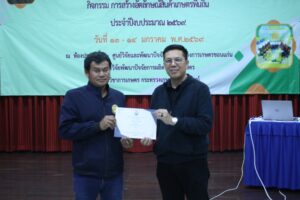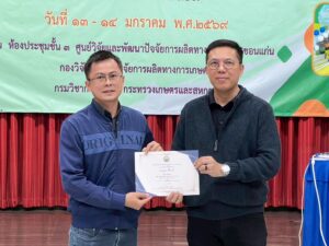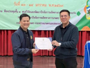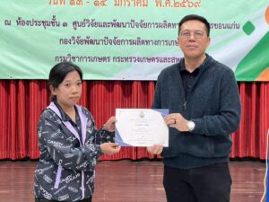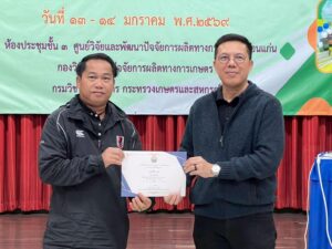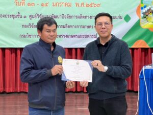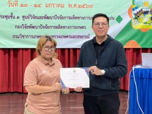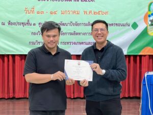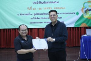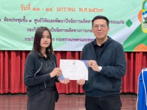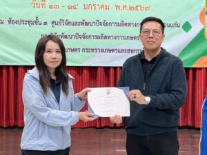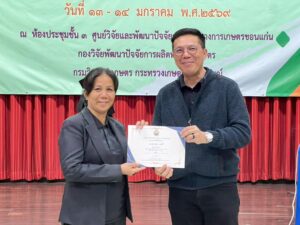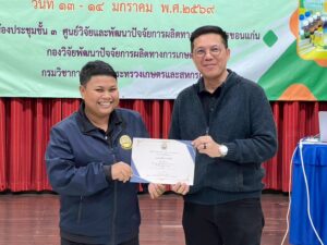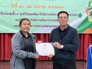 วันที่ 13 – 14 มกราคม ๒๕๖9 นายประชาธิปัตย์ พงษ์ภิญโญ ผู้อำนวยการศูนย์วิจัยและพัฒนาปัจจัยการผลิตทางการเกษตรขอนแก่น เป็นประธานเปิดการฝึกอบรมเชิงปฏิบัติการ หลักสูตร “การวิเคราะห์ดินด้วยชุดตรวจดิน DOA Soil Test Kits ” ภายใต้โครงการส่งเสริมและพัฒนาสินค้าเกษตร อัตลักษณ์พื้นถิ่น กิจกรรม การสร้างอัตลักษณ์สินค้าเกษตรพื้นถิ่น ประจำปีงบประมาณ 2569 โดยมี นายอรัญญ์ ขันติยวิชย์ นักวิชาการเกษตรชำนาญการพิเศษ เป็นผู้กล่าวรายงาน การอบรมเชิงปฏิบัติการมีเป้าหมายถ่ายทอดองค์ความรู้ให้แก่เจ้าหน้าที่ของกรมวิชาการเกษตร โดยมุ่งเน้นให้เจ้าหน้าที่ที่เข้ารับการอบรมเชิงปฏิบัตินี้สามารถใช้ชุดตรวจสอบธาตุอาหารหลัก ตรวจสอบความเป็นกรด ด่าง อินทรียวัตถุ ฟอสฟอรัส โพแทสเซียม และชุดตรวจธาตุอาหารรองและเหล็ก โดยผู้เข้าอบรมได้รับการถ่ายทอดองค์ความรู้จากวิทยากรผู้มีประสบการณ์จากกลุ่มวิจัยเกษตรเคมี กองวิจัยและพัฒนาปัจจัยการผลิตทางการเกษตร กรมวิชาการเกษตร