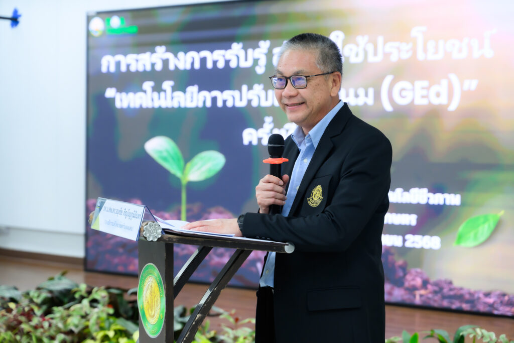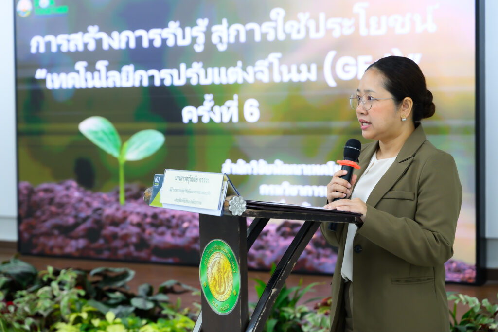 เมื่อวันที่ 5 กันยายน 2568 นางปิยรัตน์ ธรรมกิจวัฒน์ ผู้อำนวยการสำนักวิจัยพัฒนาเทคโนโลยีชีวภาพ มอบหมายให้ นางสาวอรุโณทัย ซาววา ผู้อำนวยการกลุ่มวิจัยพัฒนาการตรวจสอบพืชและจุลินทรีย์ดัดแปรพันธุกรรม พร้อมด้วยคณะผู้จัด ร่วมกับ มหาวิทยาลัยเกษตรศาสตร์ วิทยาเขตกำแพงแสน จัดการฝึกอบรมเชิงปฏิบัติการ หลักสูตร สร้างการรับรู้สู่การใช้ประโยชน์เทคโนโลยีการปรับแต่งจีโนม (Gene editing: GEd)” ครั้งที่ 6 โดยมีรองศาสตราจารย์ นายสัตวแพทย์ ดร.อนุชัย ภิญโญภูมิมินทร์ รองอธิการบดีวิทยาเขตกำแพงแสน มหาวิทยาลัยเกษตรศาสตร์ ให้เกียรติเป็นประธานเปิดการฝึกอบรม มีวัตถุประสงค์เพื่อสร้างการรับรู้ด้านเทคโนโลยีการปรับแต่งจีโนม รวมถึงแลกเปลี่ยนความรู้ ความเข้าใจ และประสบการณ์ ที่เกี่ยวข้องกับเทคโนโลยีการปรับแต่งจีโนม ให้แก่บุคลากร และประชาชนภายในพื้นที่ ซึ่งมีนักวิชาการและบุคลากรจากสำ นักวิจัยและพัฒนาการเกษตร เขตที่ 5 ศวพ.กาญจนบุรี ศวพ.นครปฐม ศูนย์วิจัยพืชไร่สุพรรณบุรี รวมถึงอาจารย์ นักวิจัย และนิสิตเข้าร่วมการฝึกอบรมดังกล่าว