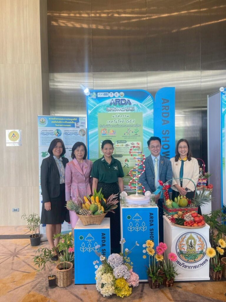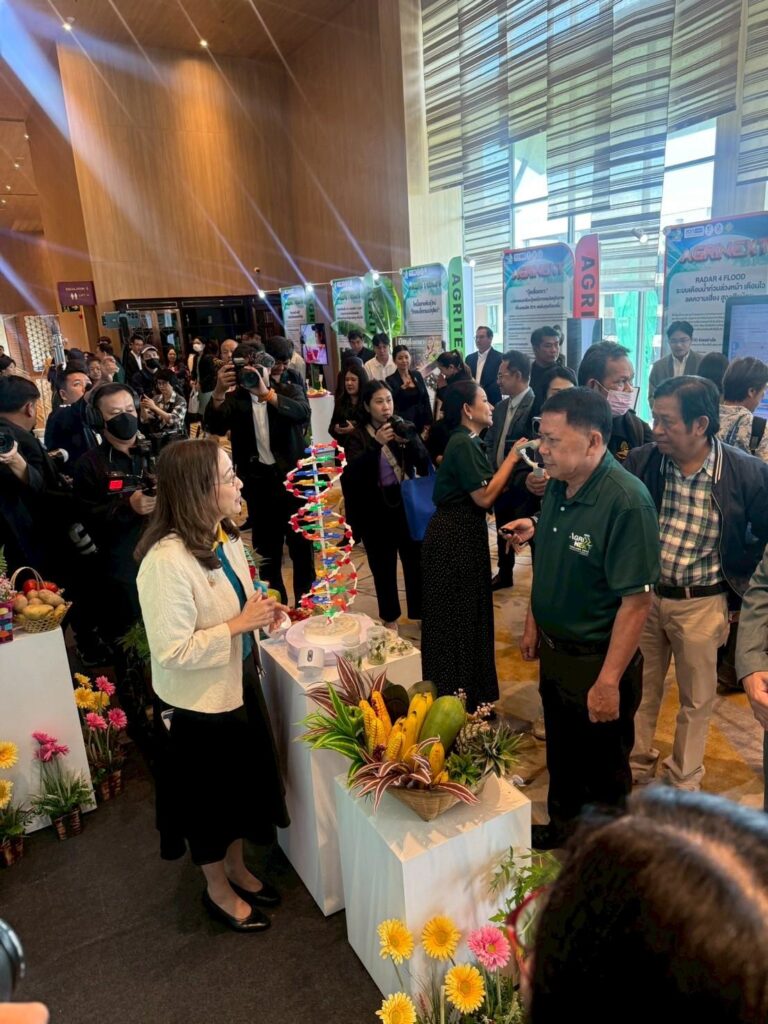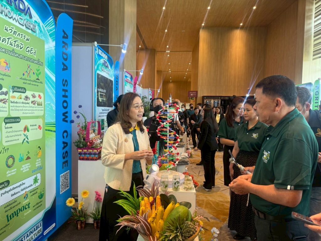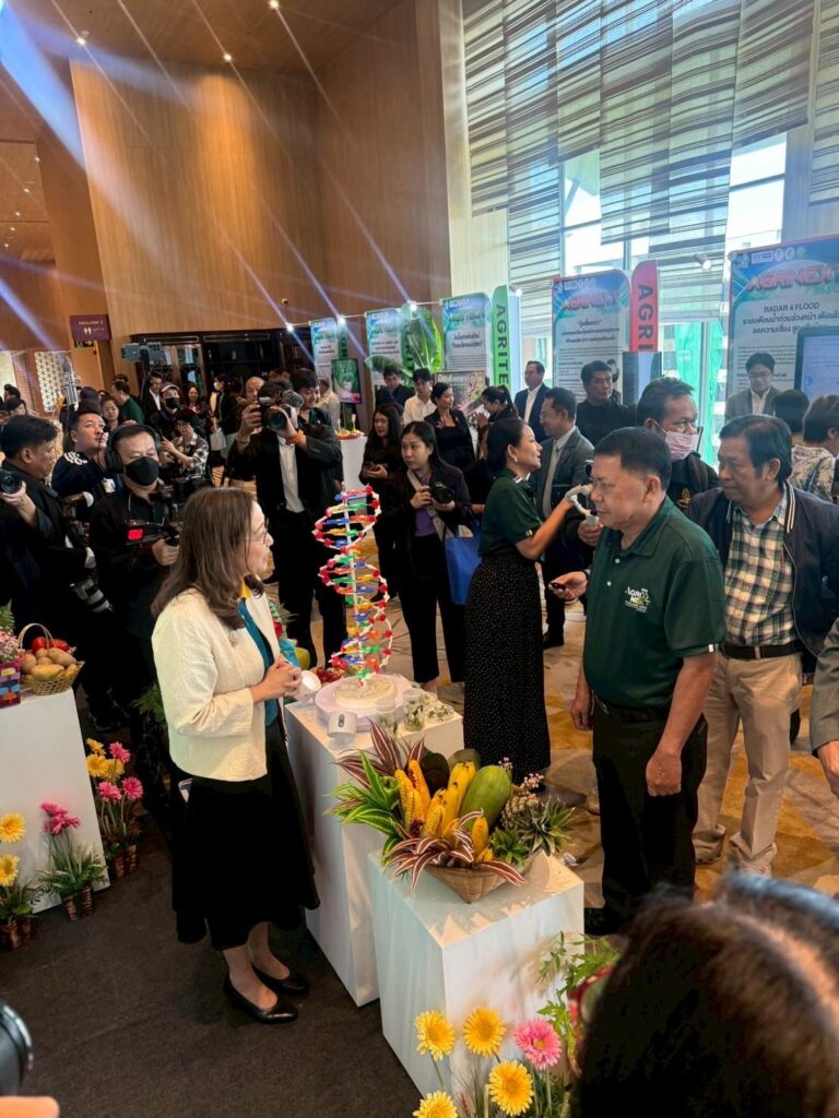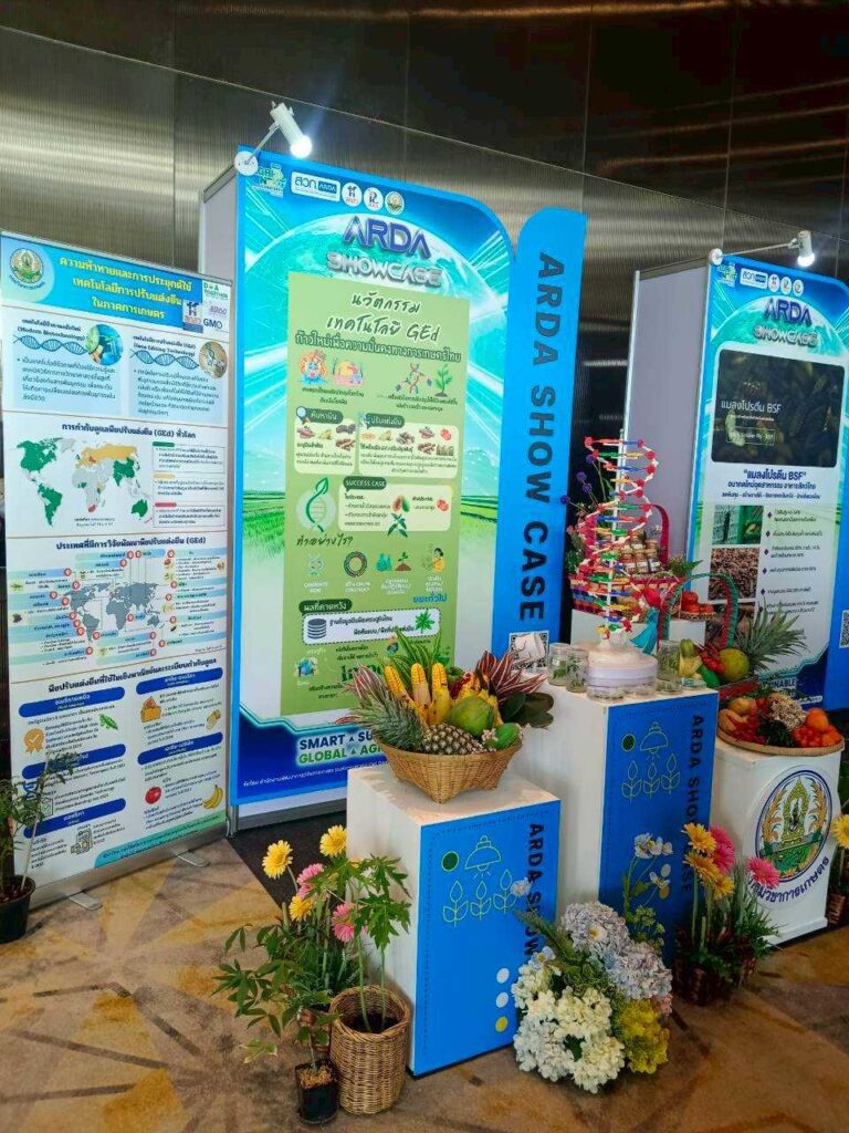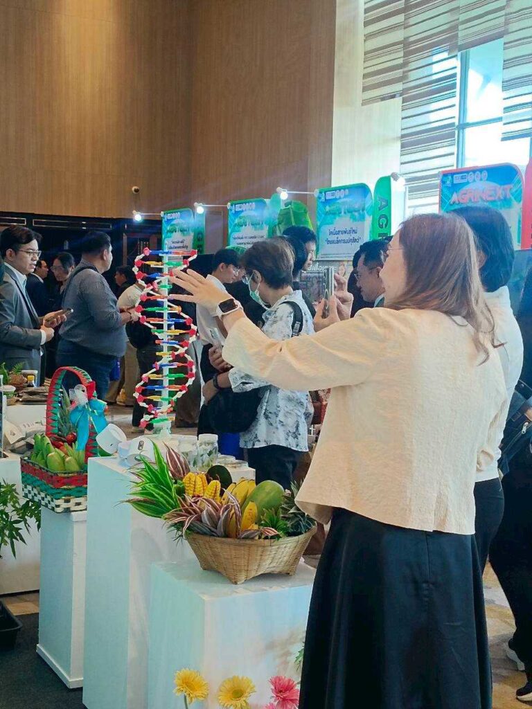 หลังเสร็จสิ้นพิธีแถลงข่าว คณะผู้บริหารนำโดยปลัดกระทรวงเกษตรและสหกรณ์ และผู้อำนวยการ สวก. ได้เยี่ยมชมนิทรรศการต่าง ๆ อาทิ นิทรรศการเทคโนโลยีการปรับแต่งจีโนม และการใช้แมลงโปรตีน BSF โดยในส่วนของ นิทรรศการเทคโนโลยีการปรับแต่งจีโนม นำเสนอโดยทีมวิจัยกรมวิชาการเกษตร นำโดย ดร. ปิยรัตน์ ธรรมกิจวัฒน์ และ นางสาวภรณี สว่างศรี รักษาการในตำแหน่งผู้เชี่ยวชาญด้านจุลชีววิทยา ซึ่งได้ถ่ายทอดความก้าวหน้าของการวิจัยด้านพืชและจุลินทรีย์ที่ใช้เทคโนโลยี GEd ในการปรับปรุงพันธุ์ เช่น มันสำปะหลังต้านทานโรคใบด่าง ถั่วเหลืองทนแล้งและโปรตีนสูง ข้าวโพดทนแล้ง เห็ดแครงที่มีสาระสำคัญเพิ่มขึ้น และมะละกอต้านทานไวรัสจุดวงแหวน