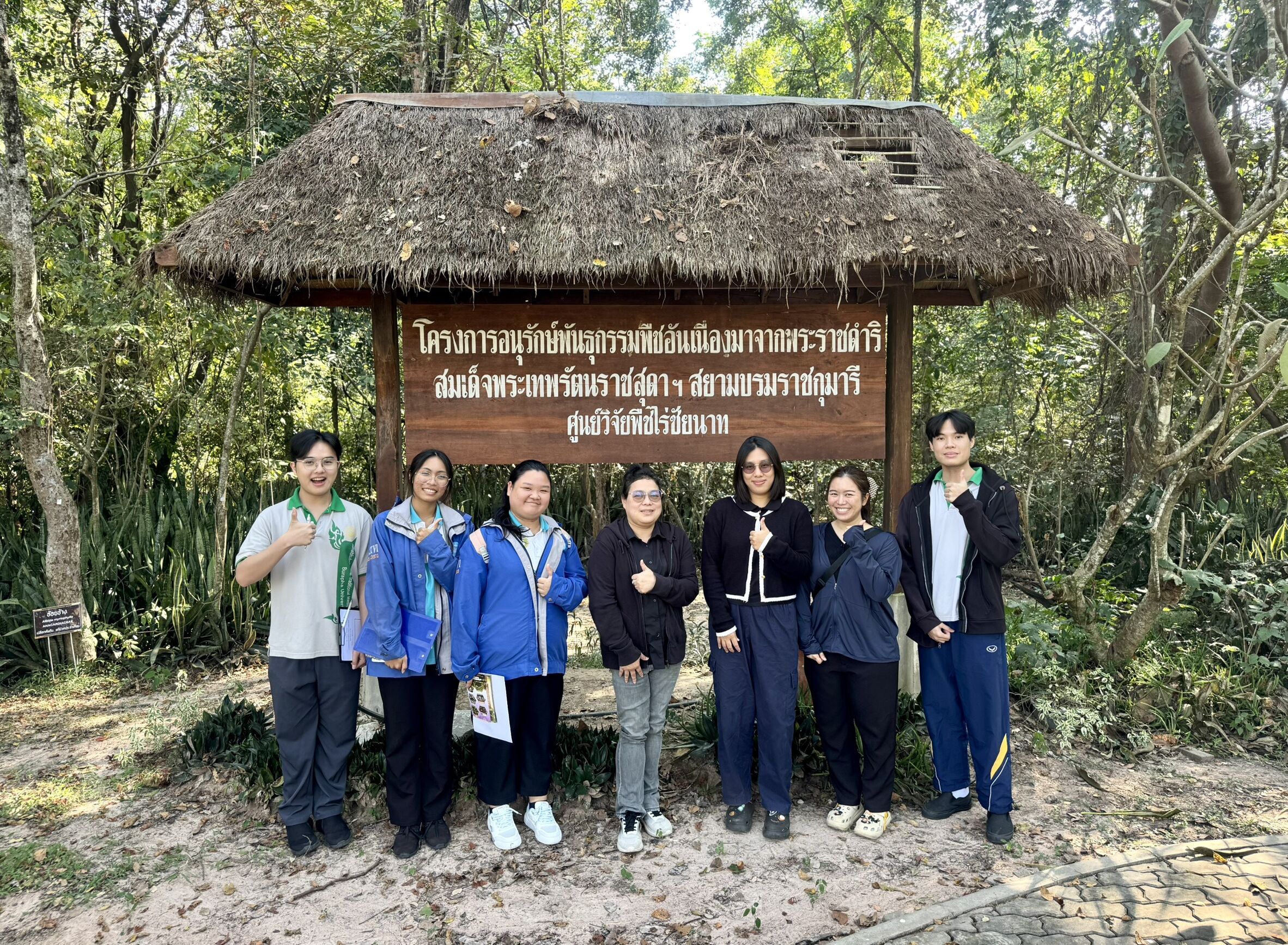 นายฉลอง เกิดศรี ผู้อำนวยการศูนย์วิจัยพืชไร่ชัยนาท มอบหมายให้นางสาวปวีณา ไชยวรรณ์ นักวิชาการเกษตรชำนาญการพิเศษ ให้การต้อนรับคณะเจ้าหน้าที่กลุ่มงานแพทย์แผนไทยและแพทย์ทางเลือก โรงพยาบาลสรรคบุรี นักศึกษาฝึกประสบการณ์การแพทย์แผนไทยประยุกต์ วิทยาลัยการแพทย์แผนไทยอภัยภูเบศร และมหาวิทยาลัยบูรพา จำนวน 6 ราย เข้าศึกษาดูงานแปลงพืชสมุนไพร เพื่อเรียนรู้ลักษณะ ชื่อ สรรพคุณ และวิธีใช้พืชสมุนไพร ในโครงการอนุรักษ์พันธุกรรมพืชอันเนื่องมาจากพระราชดำริสมเด็จพระเทพรัตนราชสุดาฯ สยามบรมราชกุมารี จังหวัดชัยนาท ในวันที่ 9 ธันวาคม 2568 ณ แปลงทดลองและขยายพันธุ์พืชดงเกณฑ์หลวง ตำบลหนองขุ่น อำเภอวัดสิงห์ จังหวัดชัยนาท