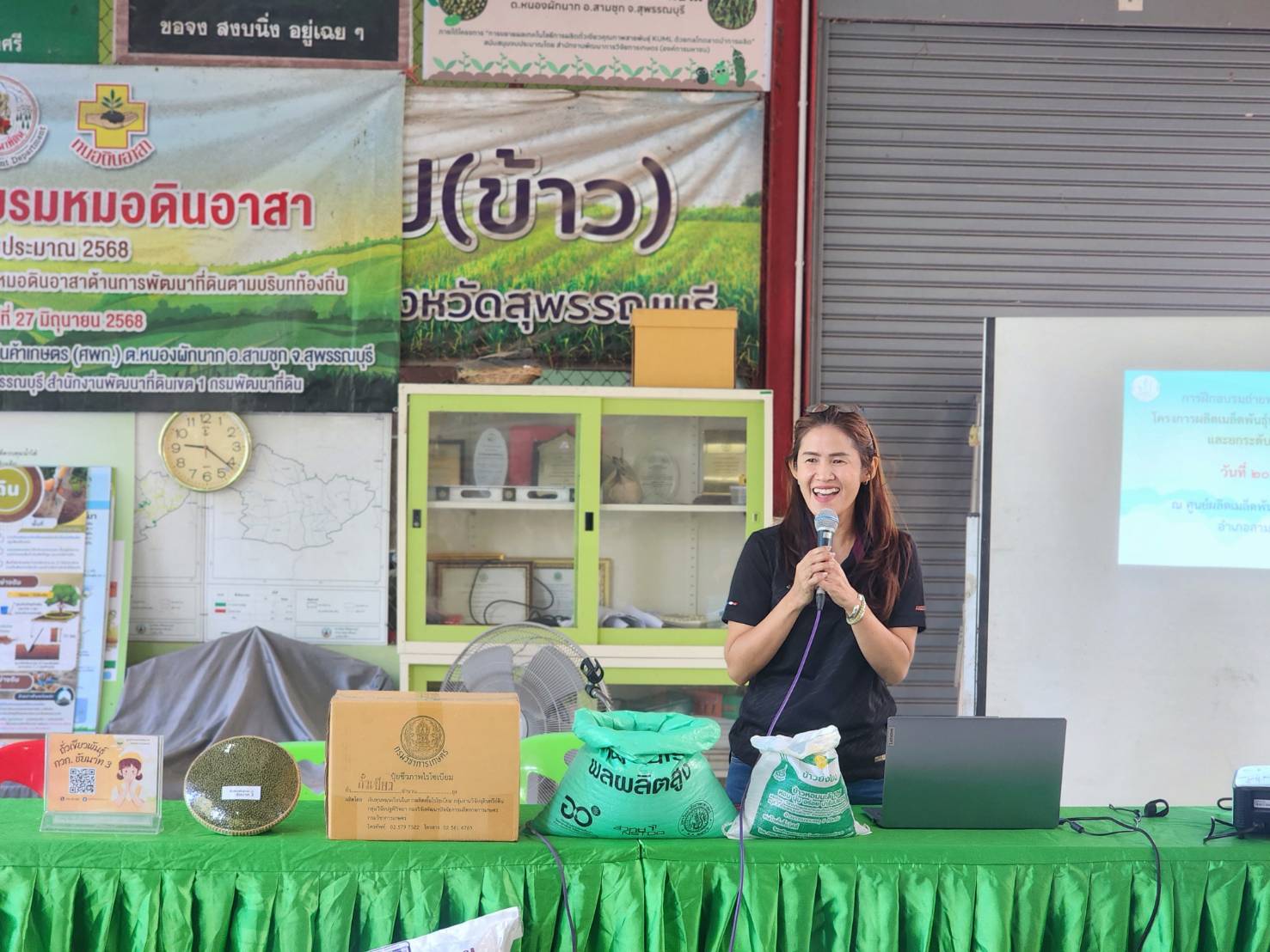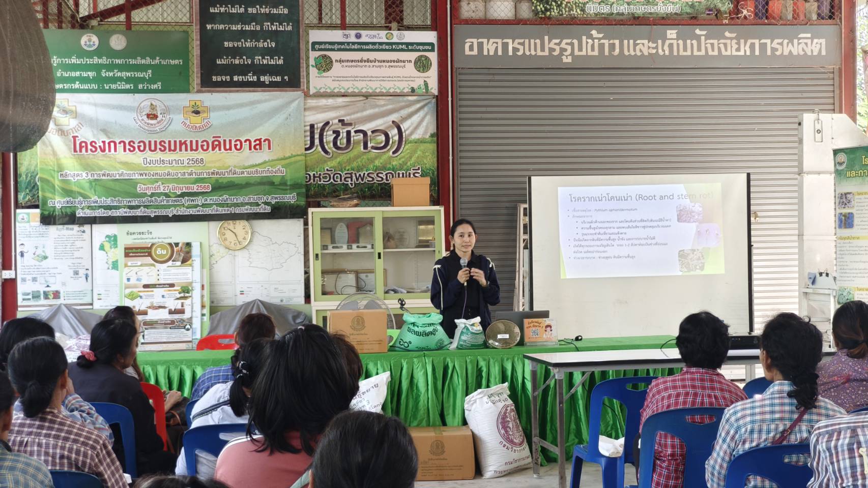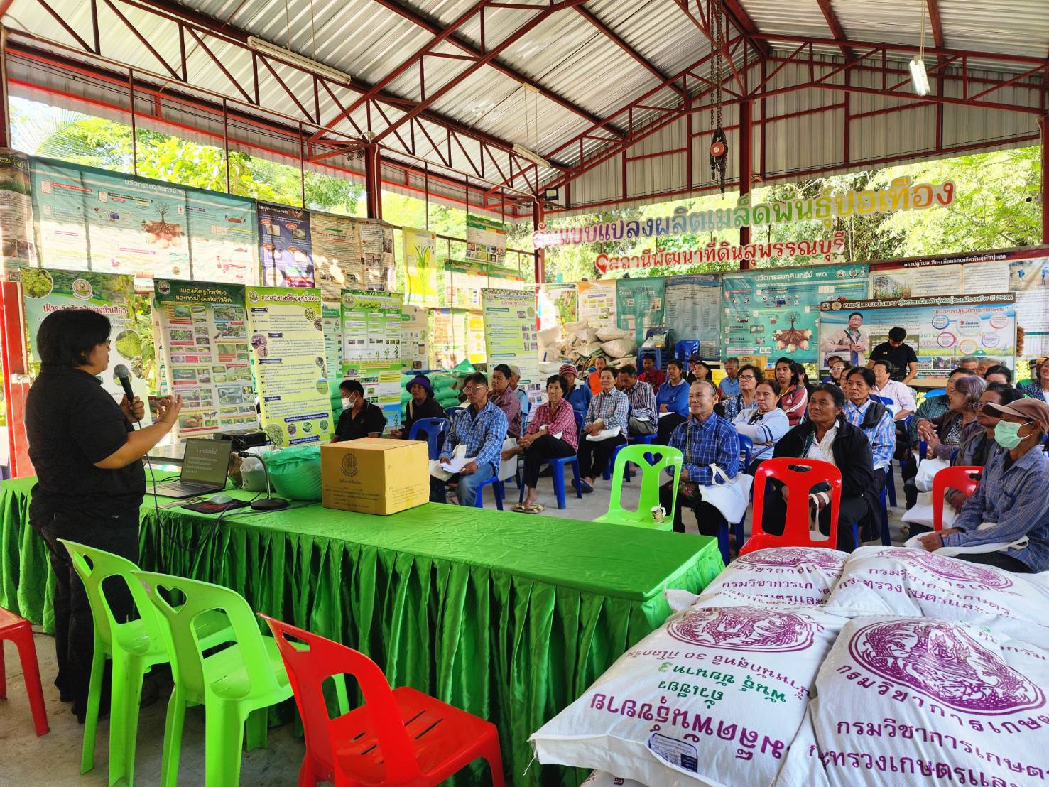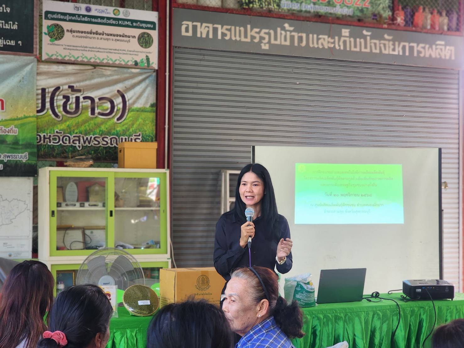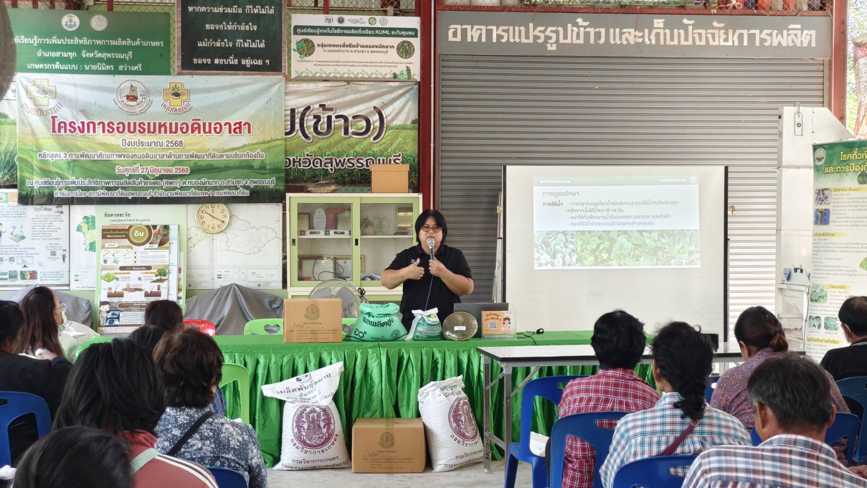 นายฉลอง เกิดศรี ผู้อำนวยการศูนย์วิจัยพืชไร่ชัยนาท มอบหมายให้นางสาวอัจฉรา จอมสง่าวงศ์ นักวิชาการเกษตรชำนาญการพิเศษ พร้อมด้วยคณะนักวิชาการเกษตร ร่วมเป็นวิทยากรบรรยายให้ความรู้ เรื่อง ถั่วเขียว พันธุ์ กวก. ชัยนาท 3 เทคนิคการปลูก และการจัดการแปลงถั่วเขียว รวมถึงการป้องกันกำจัดโรคและแมลงศัตรูพืชในถั่วเขียว ภายใต้โครงการผลิตเมล็ดพันธุ์พืชตระกูลถั่ว เพื่อเพิ่มศักยภาพการผลิต และยกระดับเศรษฐกิจชุมชนอย่างยั่งยืน จัดโดย สำนักงานเกษตรจังหวัดสุพรรณบุรี ในวันที่ 20 พฤศจิกายน 2568 ณ ศูนย์ผลิตเมล็ดพันธุ์พืชชุมชน ตำบลหนองผักนาก อำเภอสามชุก จังหวัดสุพรรณบุรี โดยมีเกษตรกรเข้าร่วมจำนวน 55 ราย