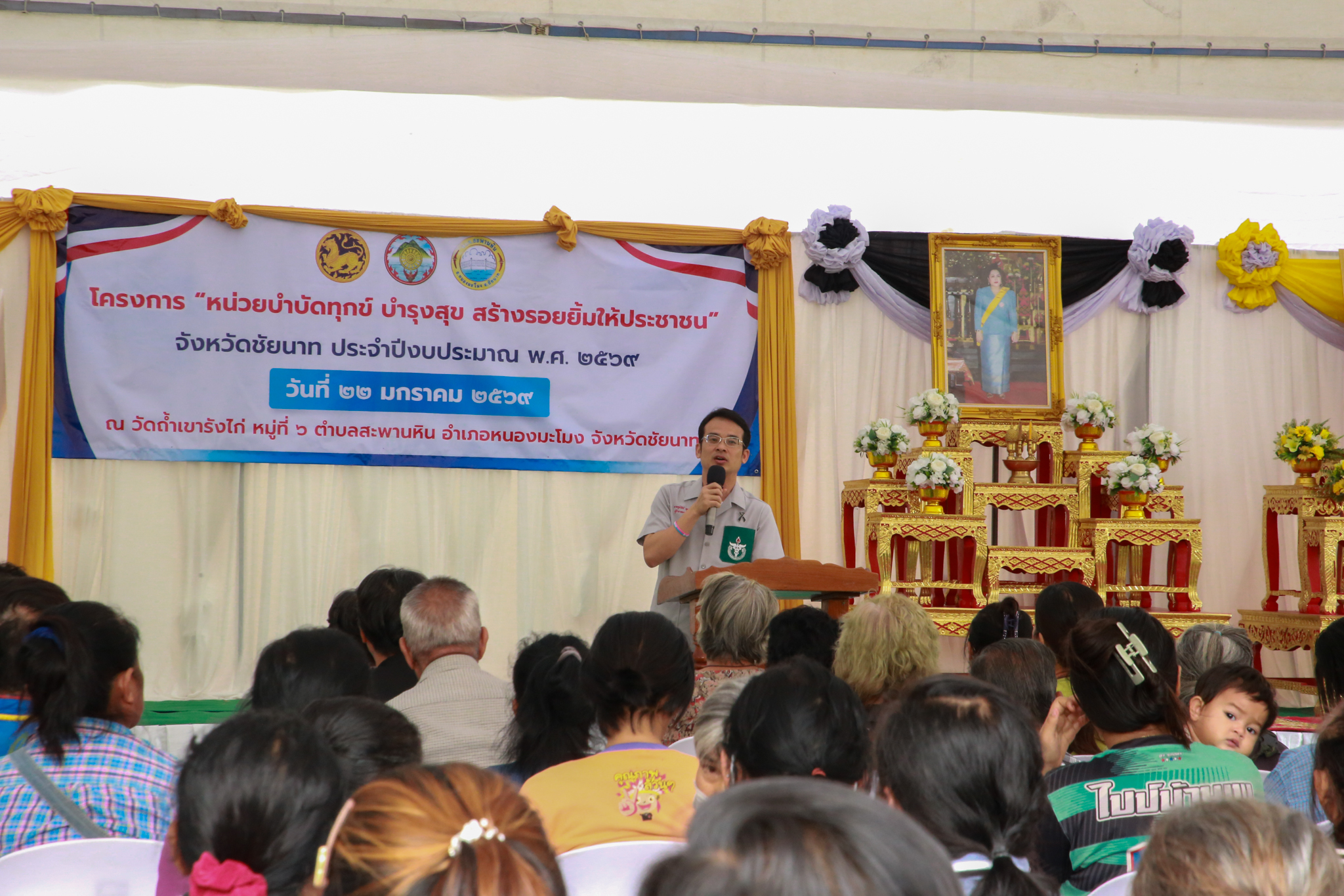 นายฉลอง เกิดศรี ผู้อำนวยการศูนย์วิจัยพืชไร่ชัยนาท มอบหมายให้นางสาววรรษมน มงคล นักวิชาการเกษตรชำนาญการ นายธีระยุทธ อุดมสันติสุข และนายธีระ นาคา นักวิชาการเกษตร ร่วมให้บริการวิชาการด้านเทคโนโลยีการผลิตถั่วเขียว ข้าวโพดฝักสด การแปรรูปถั่วงอกคอนโดปลอดสารพิษเพื่อเพิ่มมูลค่า และแจกต้นกล้าสมุนไพรโครงการอนุรักษ์พันธุกรรมพืชอันเนื่องมาจากพระราชดำริสมเด็จพระเทพรัตนราชสุดาฯ สยามบรมราชกุมารี ในโครงการ “หน่วยบำบัดทุกข์ บำรุงสุข สร้างรอยยิ้มให้ประชาชน” จังหวัดชัยนาท ประจำปีงบประมาณ พ.ศ. 2569 ครั้งที่ 2 ในวันที่ 22 มกราคม 2569 ณ วัดถ้ำเขารังไก่ หมู่ที่ 6 ตำบลสะพานหิน อำเภอหนองมะโมง จังหวัดชัยนาท โดยมีนายภูมิวัชร์ อุดมทรัพย์ ผู้ว่าราชการจังหวัดชัยนาท เป็นประธานในพิธีเปิดฯ เกษตรกรเข้าร่วมจำนวน 200 ราย