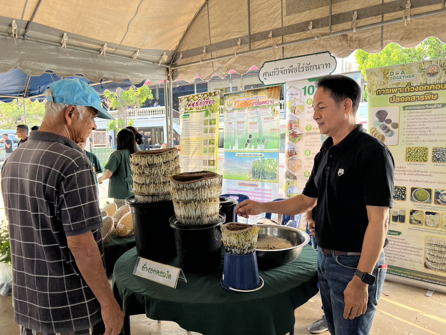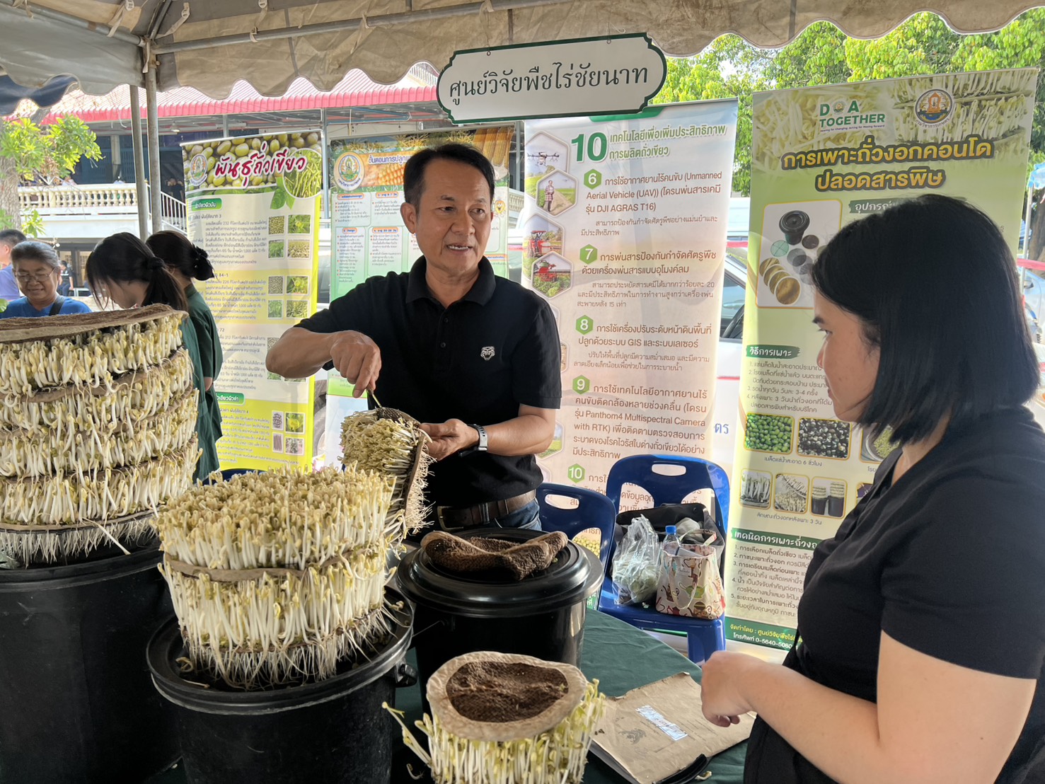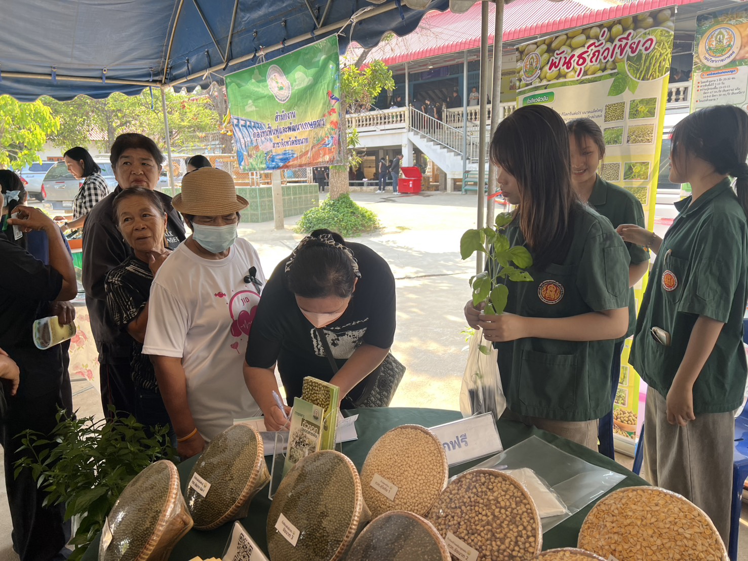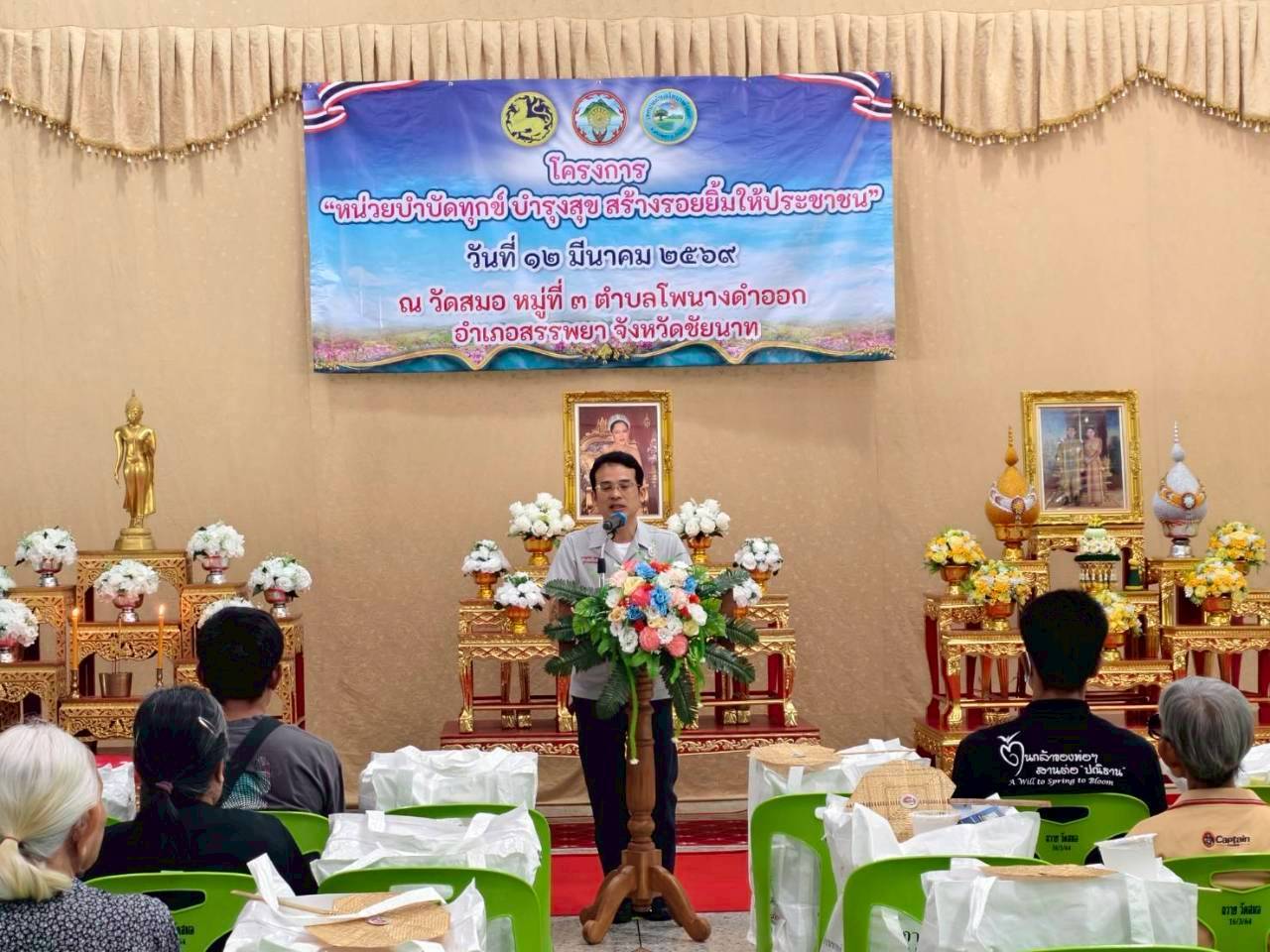 นายฉลอง เกิดศรี ผู้อำนวยการศูนย์วิจัยพืชไร่ชัยนาท มอบหมายให้นางสาวศมิษฐา แม้นเหมือน นักวิชาการเกษตรชำนาญการ นายธีระ นาคา และนางสาวฉวีวรรณ เต็งน้อย นักวิชาการเกษตร ร่วมให้บริการวิชาการด้านเทคโนโลยีการผลิตถั่วเขียว ข้าวโพดฝักสด การแปรรูปถั่วงอกคอนโดปลอดสารพิษเพื่อเพิ่มมูลค่า และแจกต้นกล้าสมุนไพรโครงการอนุรักษ์พันธุกรรมพืชอันเนื่องมาจากพระราชดำริสมเด็จพระเทพรัตนราชสุดาฯ สยามบรมราชกุมารี ในโครงการ “หน่วยบำบัดทุกข์ บำรุงสุข สร้างรอยยิ้มให้ประชาชน“ จังหวัดชัยนาท ในวันที่ 12 มีนาคม 2569 ณ วัดสมอ ตำบลโพนางดำออก อำเภอสรรพยา จังหวัดชัยนาท โดยมีนายภูมิวัชร์ อุดมทรัพย์ ผู้ว่าราชการจังหวัดชัยนาท เป็นประธานในพิธีเปิดฯ เกษตรกรเข้าร่วมจำนวน 150 ราย