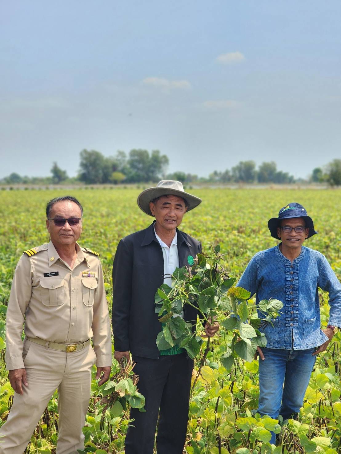 นายฉลอง เกิดศรี ผู้อำนวยการศูนย์วิจัยพืชไร่ชัยนาท พร้อมด้วยเจ้าหน้าที่ศูนย์ ฯ ติดตามการดำเนินงานและให้คำแนะนำแก่เกษตรกรผู้ปลูกถั่วเขียว พันธุ์ กวก.ชัยนาท 72 ที่เข้าร่วมโครงการลดการปล่อยก๊าซเรือนกระจกอย่างยั่งยืนและการจัดการเพื่อมุ่งสู่สังคมคาร์บอนต่ำ กิจกรรมที่ 2 การลดการปล่อยก๊าซเรือนกระจกจากการเผาไหม้ที่ก่อให้เกิดฝุ่นควัน PM2.5 ในภาคเกษตร ในวันที่ 13 มีนาคม 2569 ณ แปลงเกษตรกร อำเภอสามชุก และอำเภอหนองหญ้าไซ จังหวัดสุพรรณบุรี พื้นที่ 250 ไร่