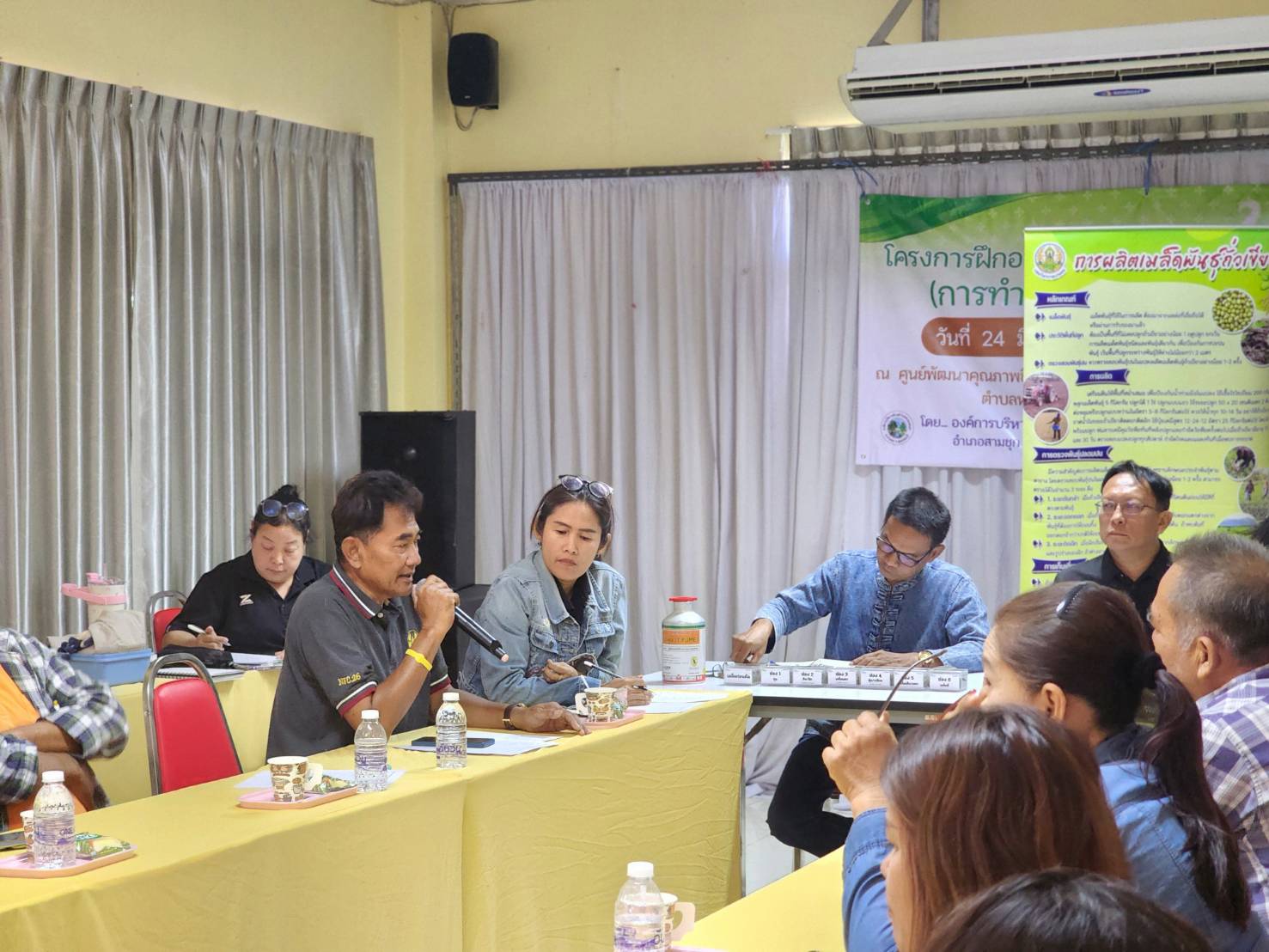 นายฉลอง เกิดศรี ผู้อำนวยการศูนย์วิจัยพืชไร่ชัยนาท พร้อมด้วยเจ้าหน้าที่ศูนย์ ฯ ติดตามงานและสรุปผลการดำเนินงาน พร้อมหารือถึงปัญหา และแนวทางการแก้ไขในการปลูกถั่วเขียว ภายใต้โครงการลดการปล่อยก๊าซเรือนกระจกอย่างยั่งยืนและการจัดการเพื่อมุ่งสู่สังคมคาร์บอนต่ำ กิจกรรมที่ 2 การลดการปล่อยก๊าซเรือนกระจกจากการเผาไหม้ที่ก่อให้เกิดฝุ่นควัน PM2.5 ในภาคเกษตร ในวันที่ 30 มีนาคม 2569 ณ องค์การบริหารส่วนตำบลหนองสะเดา อำเภอสามชุก จังหวัดสุพรรณบุรี เกษตรกรเข้าร่วมจำนวน 15 ราย